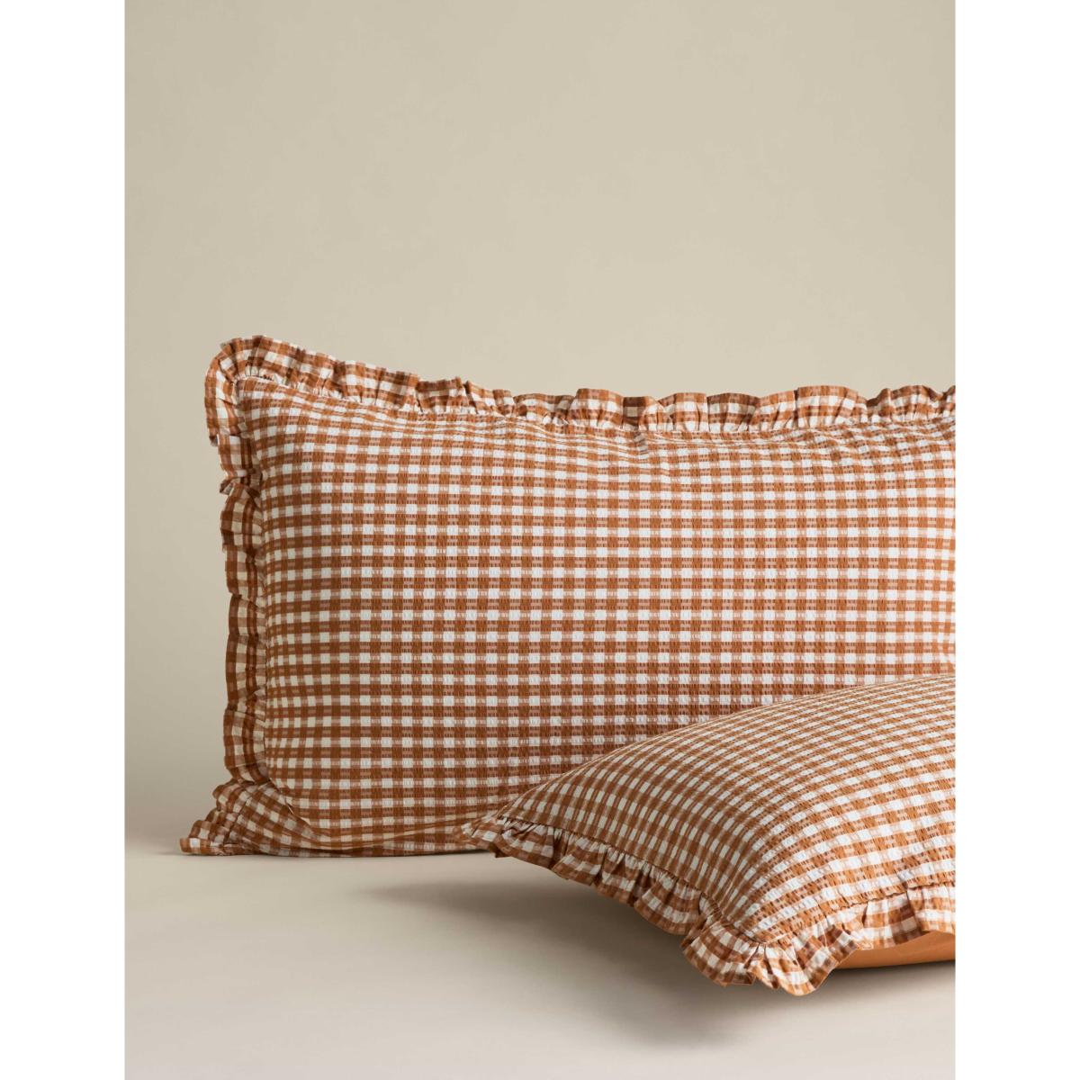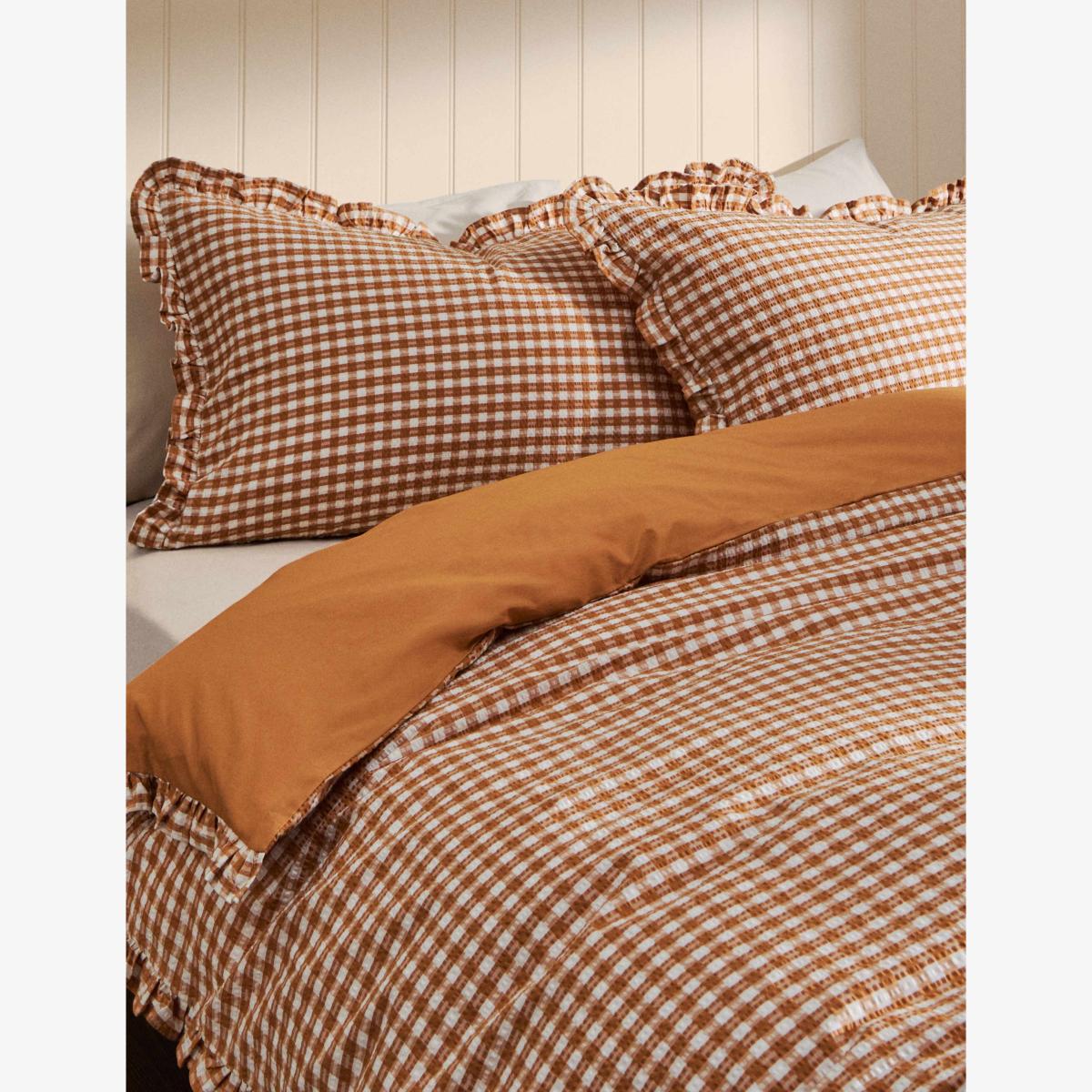 M&S Collection Pure Cotton Gingham Ruffle Bedding Set - KING - Caramel, Caramel,Natural