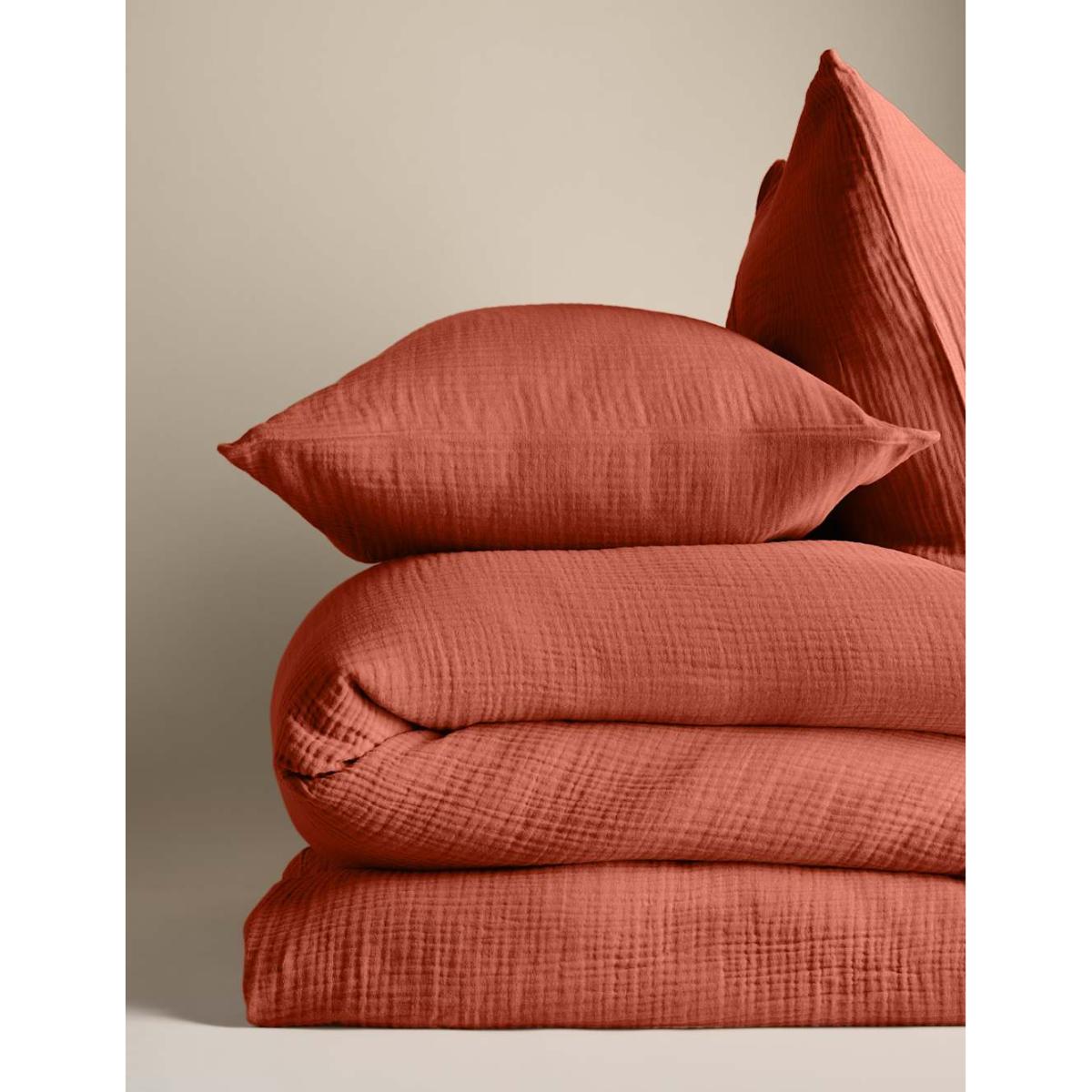 M&S Collection Pure Cotton Muslin Bedding Set - SGL - Rust, Rust,Light Aqua