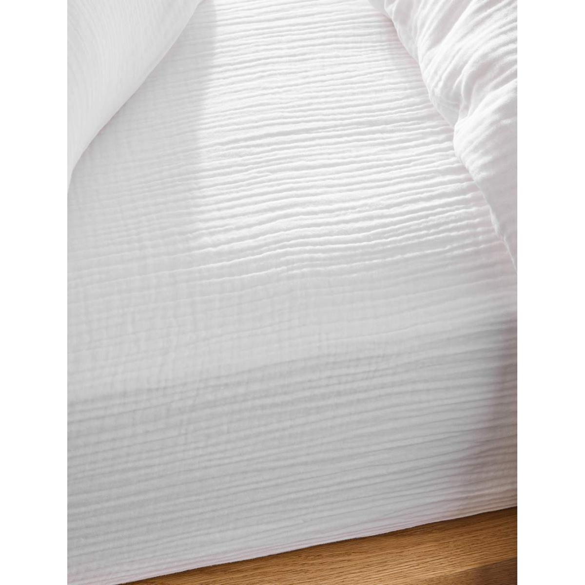 Enjoy the soft, natural feel of this pure cotton fitted sheet. It's crafted in a beautifully textured muslin weave that's gentle on the skin. The deep elasticated design ensures a secure and smooth fit on mattresses up to 30cm.
