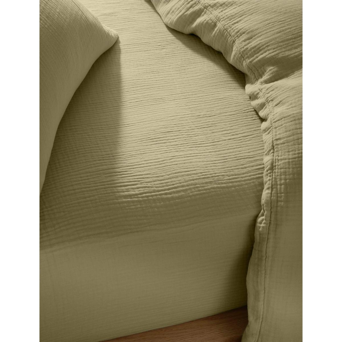 Enjoy the soft, natural feel of this pure cotton fitted sheet. It's crafted in a beautifully textured muslin weave that's gentle on the skin. The deep elasticated design ensures a secure and smooth fit on mattresses up to 30cm.