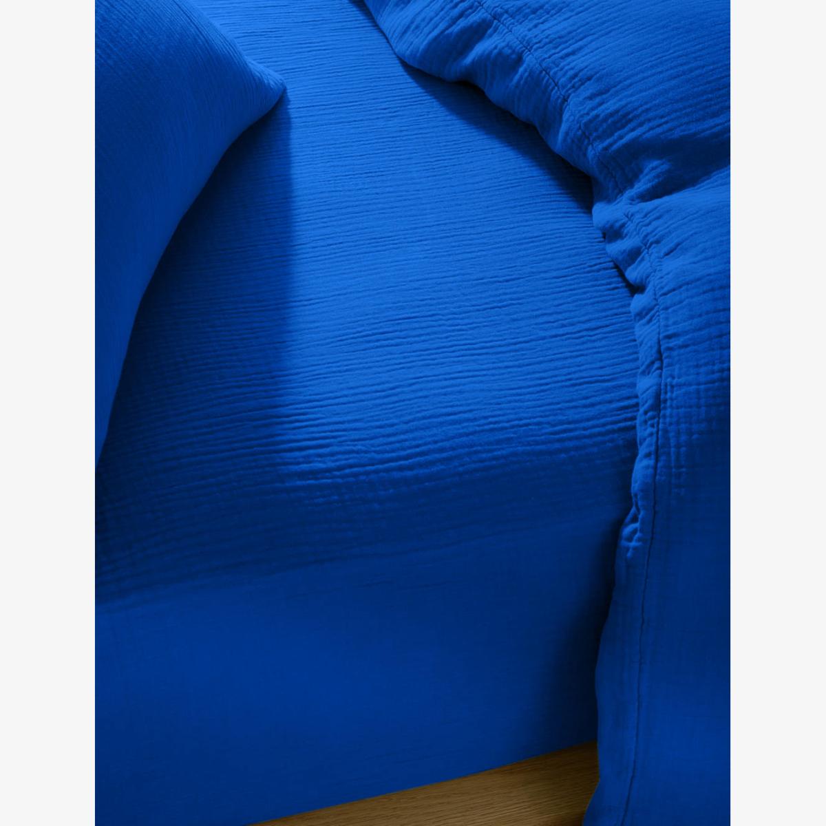 M&S Collection Pure Cotton Muslin Deep Fitted Sheet - DBL - Cobalt, Rust,Cobalt,Light Aqua,Olive,Soft Terracotta,Ochre,Sand,White