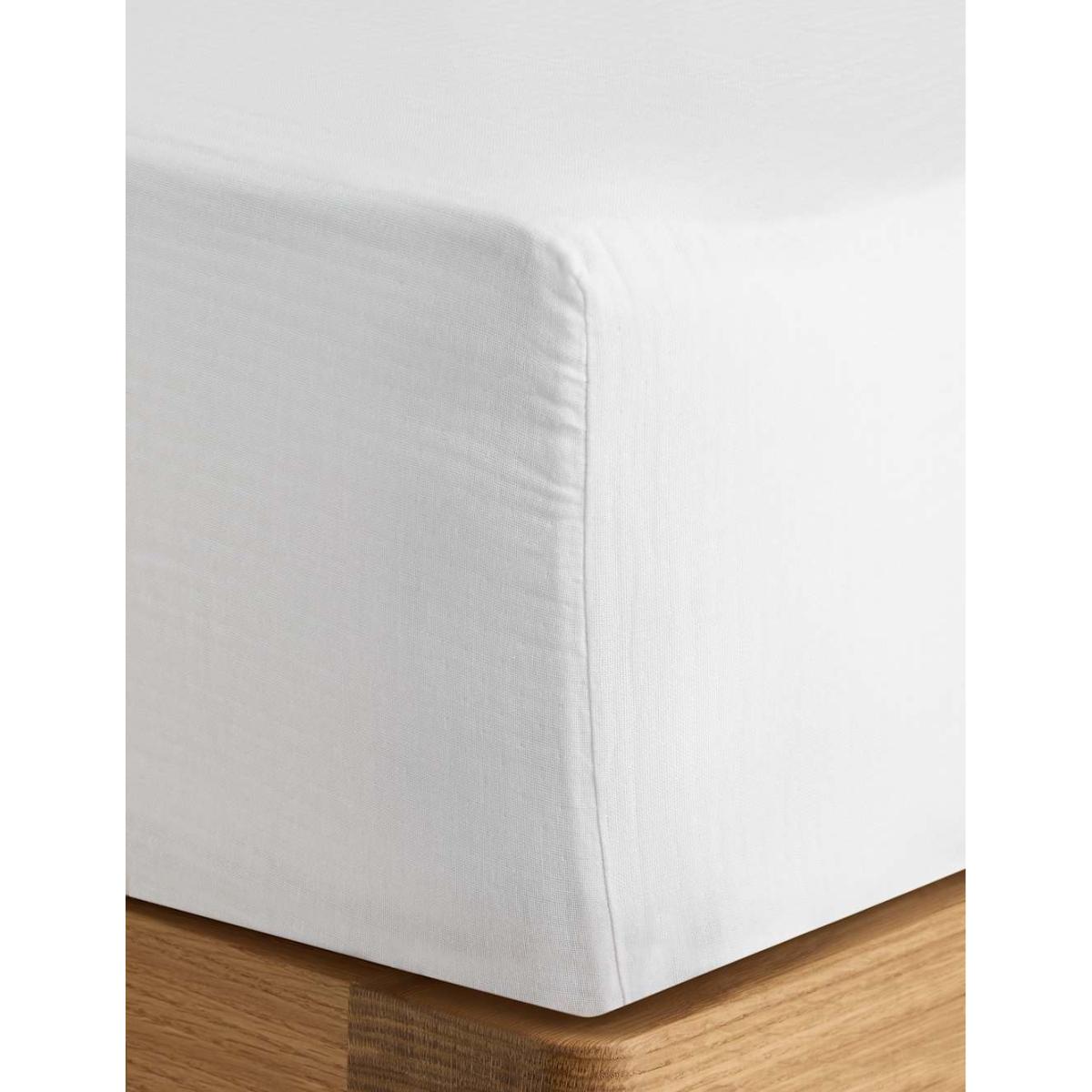 Enjoy the soft, natural feel of this pure cotton fitted sheet. It's crafted in a beautifully textured muslin weave that's gentle on the skin. The deep elasticated design ensures a secure and smooth fit on mattresses up to 30cm.