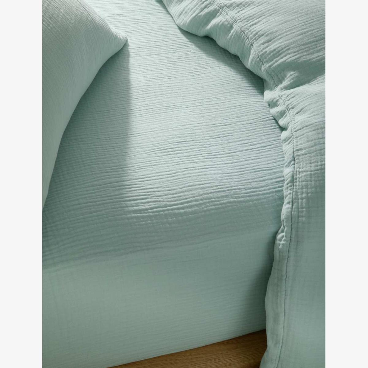 This sheet is a great choice for those seeking a simple yet elegant bedding update. I love its light aqua shade, which introduces a fresh, calming tone that works perfectly in neutral or pastel-themed interiors. Its pure cotton muslin fabric adds a beautifully crisp yet soft touch, ideal for creating a relaxing bedroom vibe. This sheet pairs well with both linen and cotton bedding sets, and its deep fit design ensures a snug fit on thicker mattresses, making it practical for everyday use. For styling, consider layering with subtly textured blankets or mixing with white and similar pastel tones for a tranquil, cohesive look. It’s versatile enough to complement contemporary, scandi, or classic bedroom schemes.