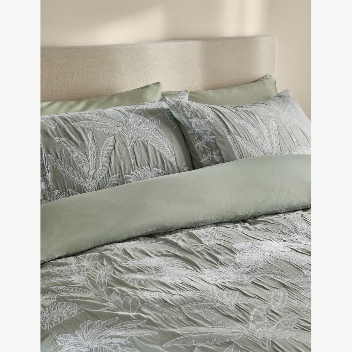 Crafted from pure cotton, this bedding set bring a touch of the tropics to your bedroom. The textured jacquard fabric has a palm foliage design throughout. The duvet cover is completed with a button fastening. Our StayNew™ technology keeps your new set looking and feeling its best.