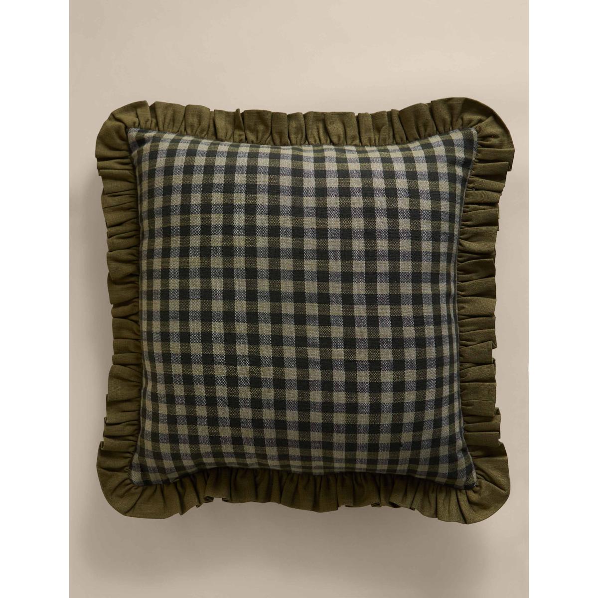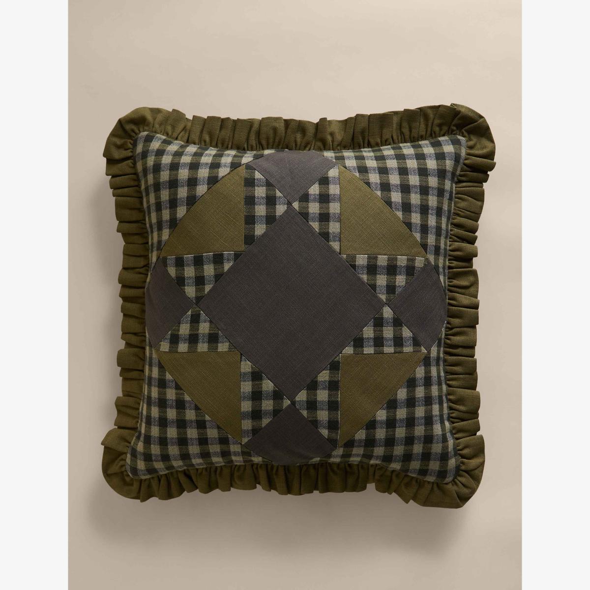I love this green patchwork cushion for its cosy, handcrafted look that adds richness and texture to any space. Its combination of patterns and the ruffled edge make it perfect for a relaxed, country-inspired, or eclectic interior. It works well styled on a neutral sofa to bring a pop of colour and visual interest, or layered with other cushions for an inviting and layered feel. Practical styling tips include pairing it with neutral-toned throws or other earthy accents to enhance its natural charm, or mixing it with other patchwork or checked textiles to create a cohesive, layered aesthetic. Its versatile colour makes it easy to incorporate into both contemporary and traditional schemes, making it a handy piece to elevate your living space.
