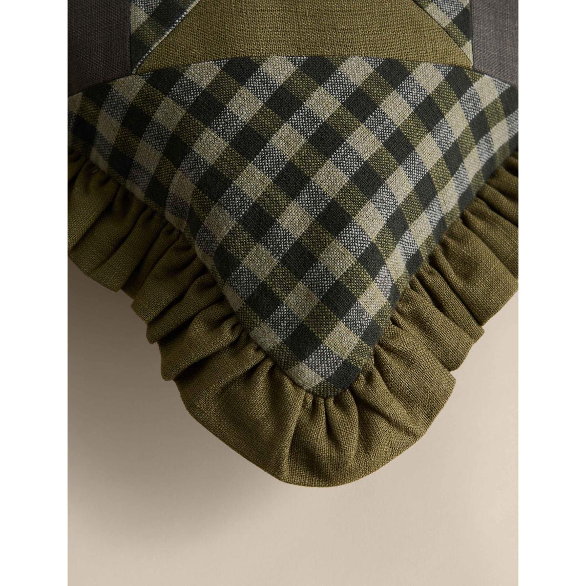 M&S Collection Pure Cotton Patchwork Quilted Frill Cushion - Green, Green