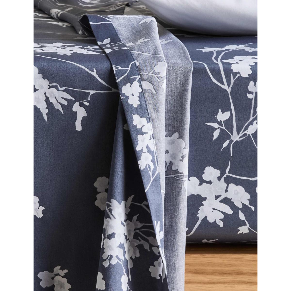 M&S Collection Pure Cotton Sateen Cherry Blossom Flat Sheet - 6FT - Blue Mix, Blue Mix,Green Mix