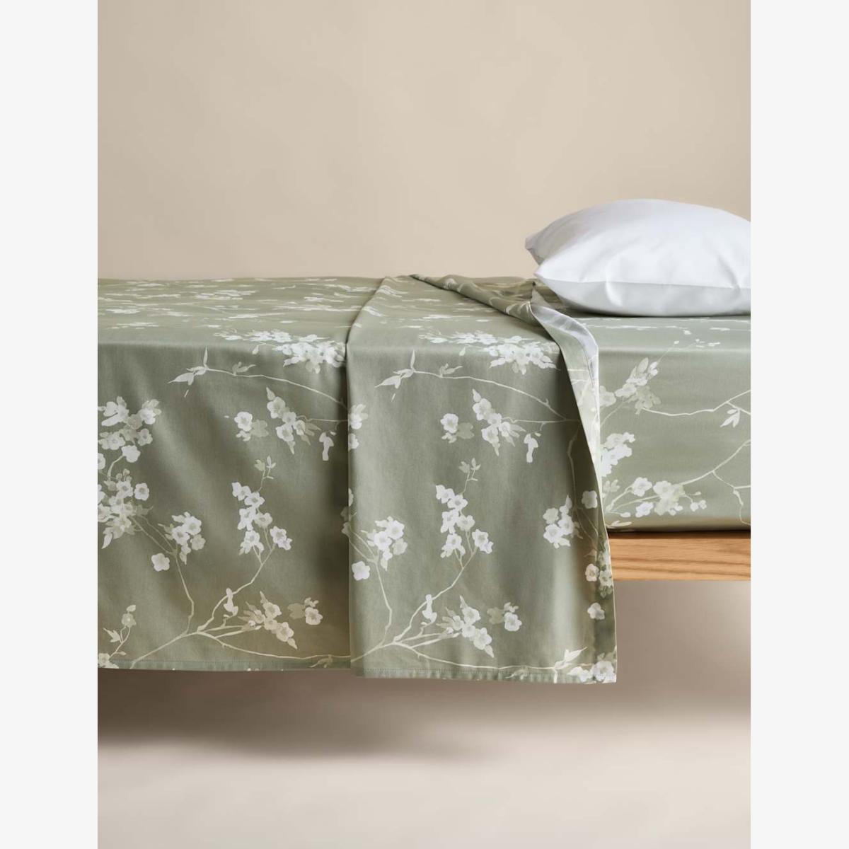 M&S Collection Pure Cotton Sateen Cherry Blossom Flat Sheet - DBL - Green Mix, Green Mix,Blue Mix