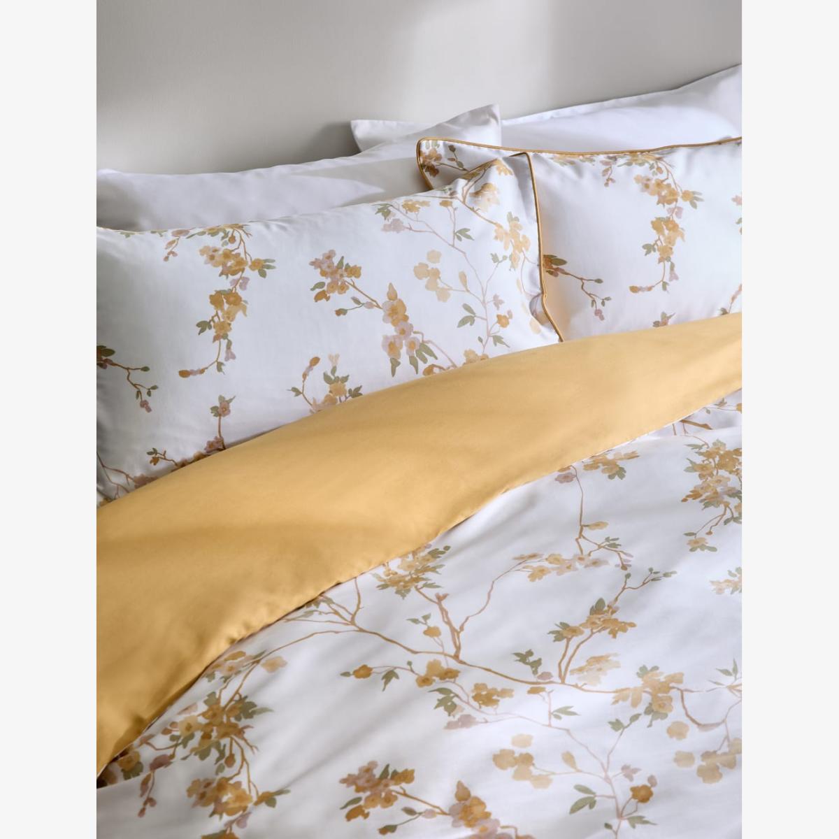 With its hand-painted motif of trailing cherry blossoms, this pure cotton sateen bedding set brings a romantic feel to your bedroom. It's crafted from 220 thread count fabric that feels luxurious to sleep under, and is finished with a plain reverse side in a co-ordinating colour. The cover fastens with a zipper for easy changing and a neat look.