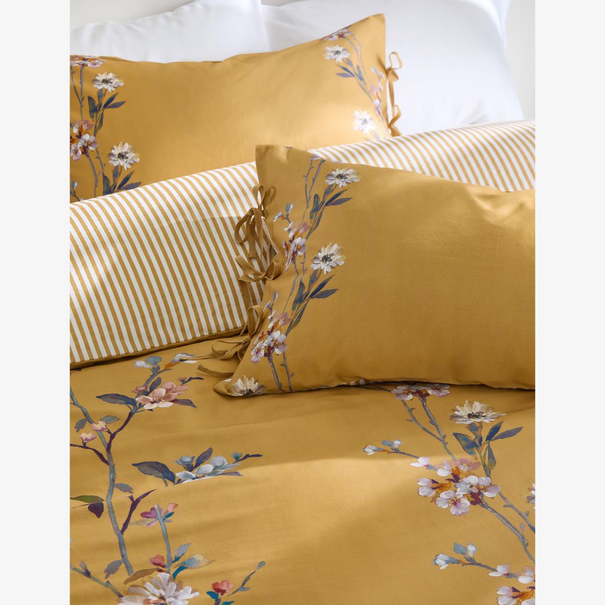 This bedding set is a clever blend of classic and contemporary style, making it versatile for many interiors. I love how the painted floral print, combined with the warm honey tones, adds a touch of softness and natural elegance to the bedroom. It works particularly well in spaces with neutral or muted colour schemes, enhancing a cosy, inviting atmosphere. To style it effectively, consider pairing with crisp white or soft beige linens to keep the look fresh, and add textured cushions or throws in complementary colours to build layers of interest. This set is ideal for creating a warm, welcoming vibe, especially in relaxed, shabby chic, or modern country interiors.