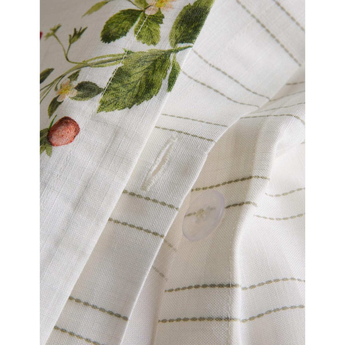 Bring a fresh botanical feel to your bedroom with our pure cotton bedding set. It features a winding strawberry plant print on one side and classic stripes on the reverse. Button fastenings provide a neat finishing touch.