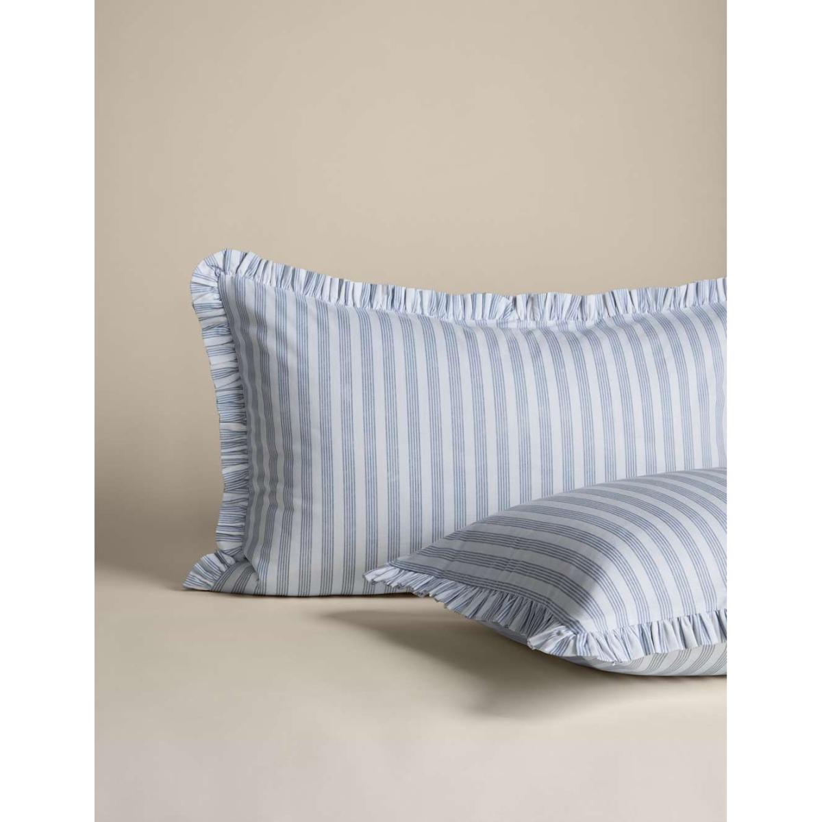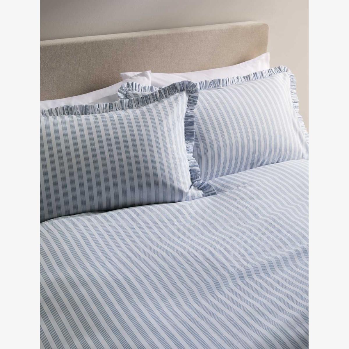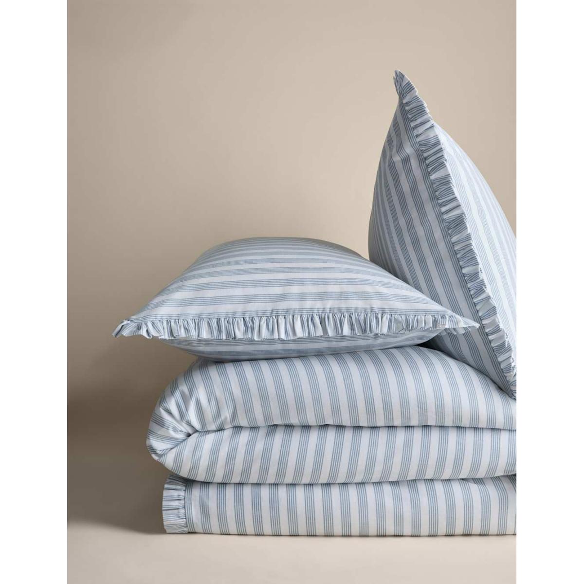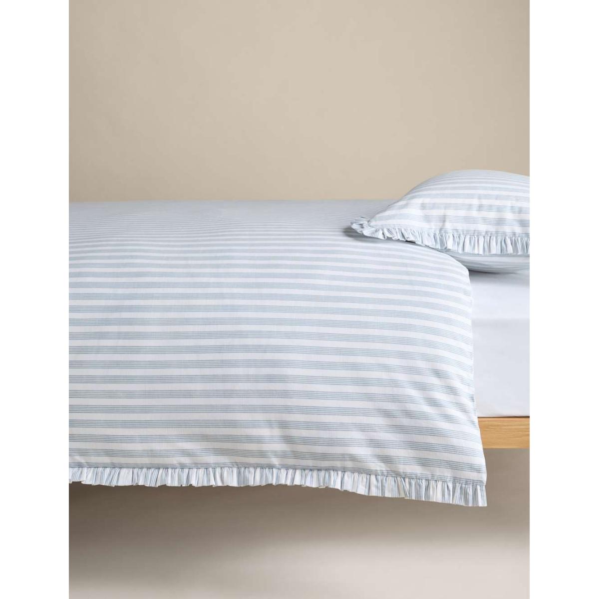M&S Collection Pure Cotton Striped Ruffle Bedding Set - 6FT - Blue Mix, Blue Mix