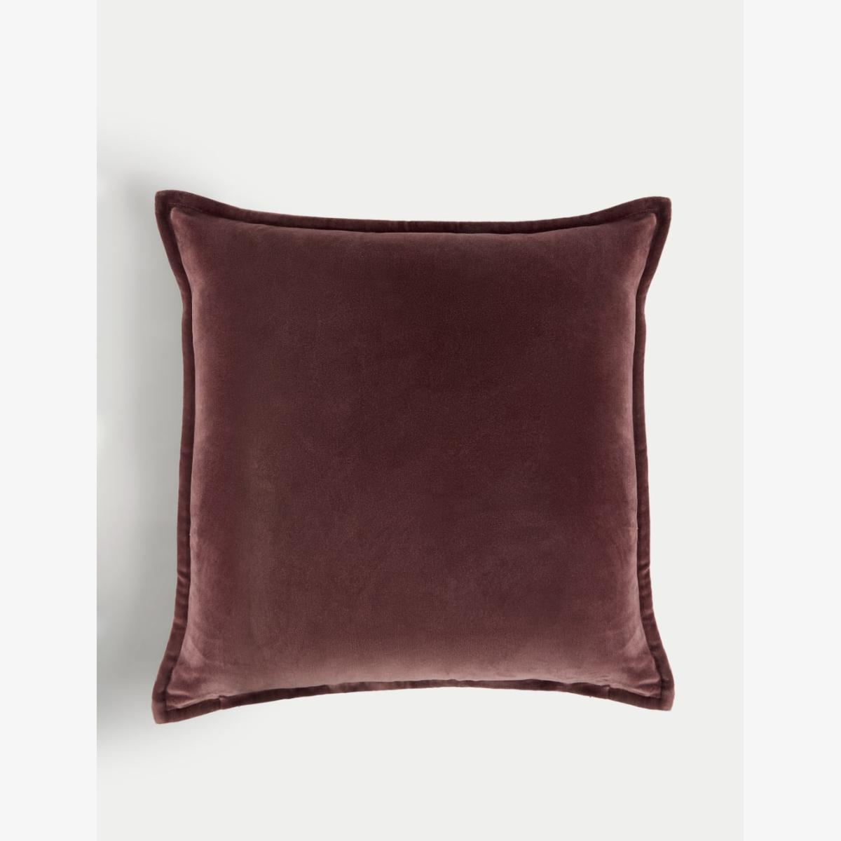 M&S Collection Pure Cotton Velvet Cushion - Aubergine, Dark Green,Aubergine,Navy,Light Grey,Soft Pink,Sage,Cranberry,Dusty Green,Dark Gold,Rust