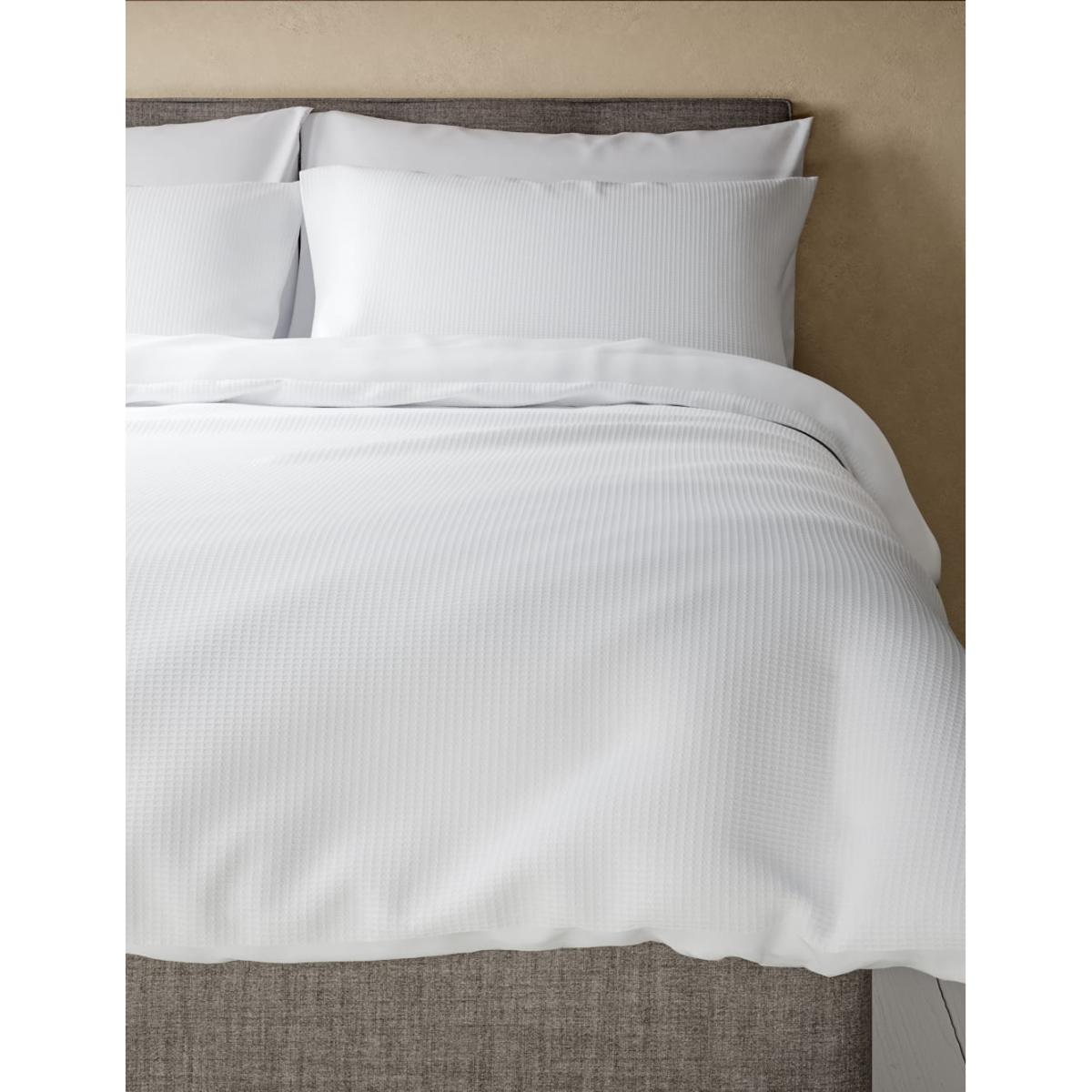 M&S Collection Pure Cotton Waffle Bedding Set - DBL - Neutral, White,Neutral
