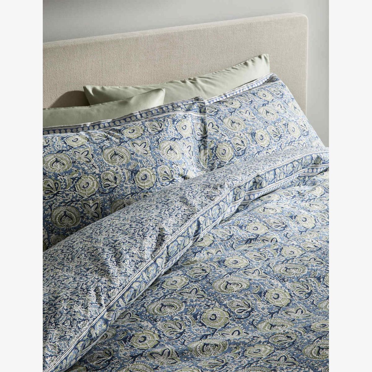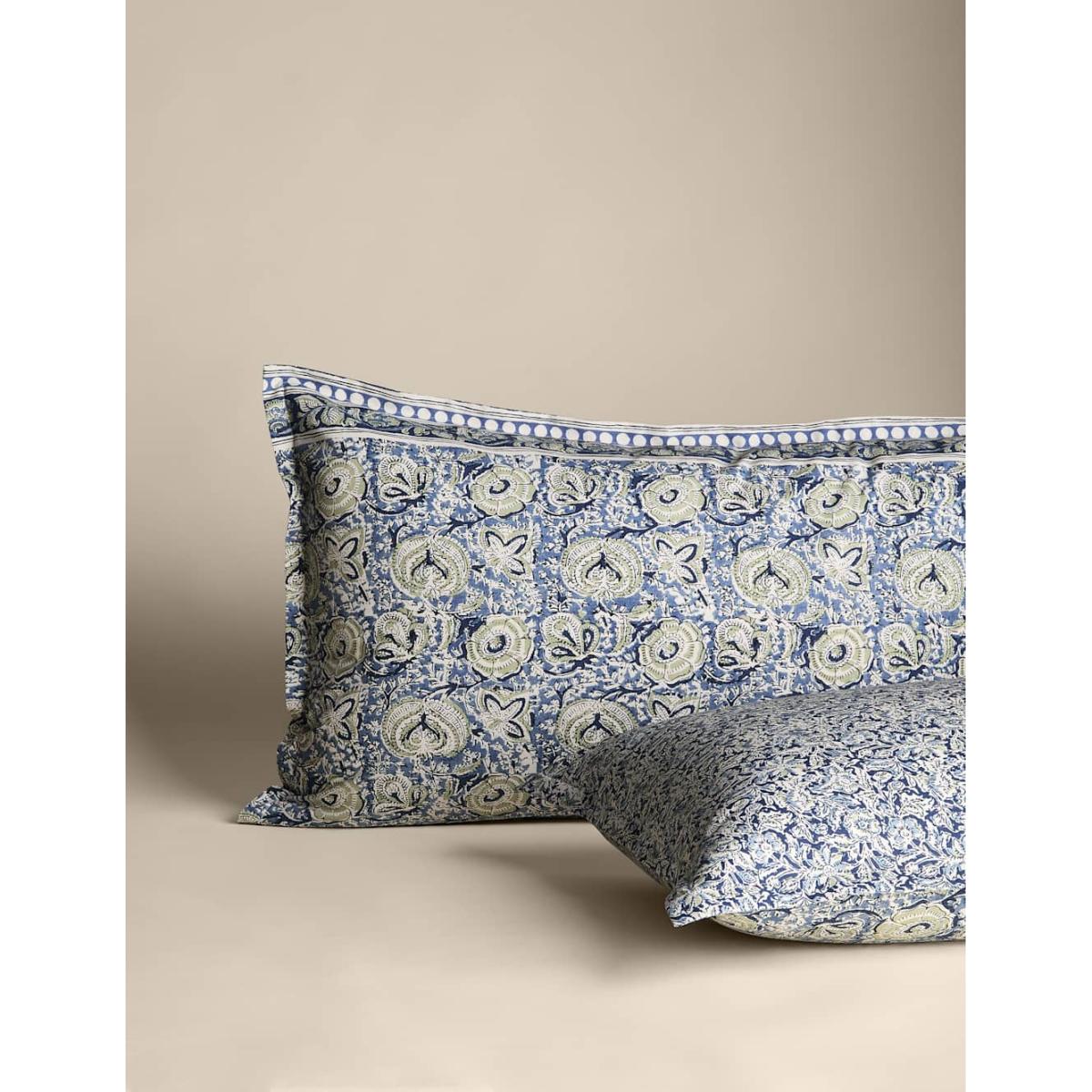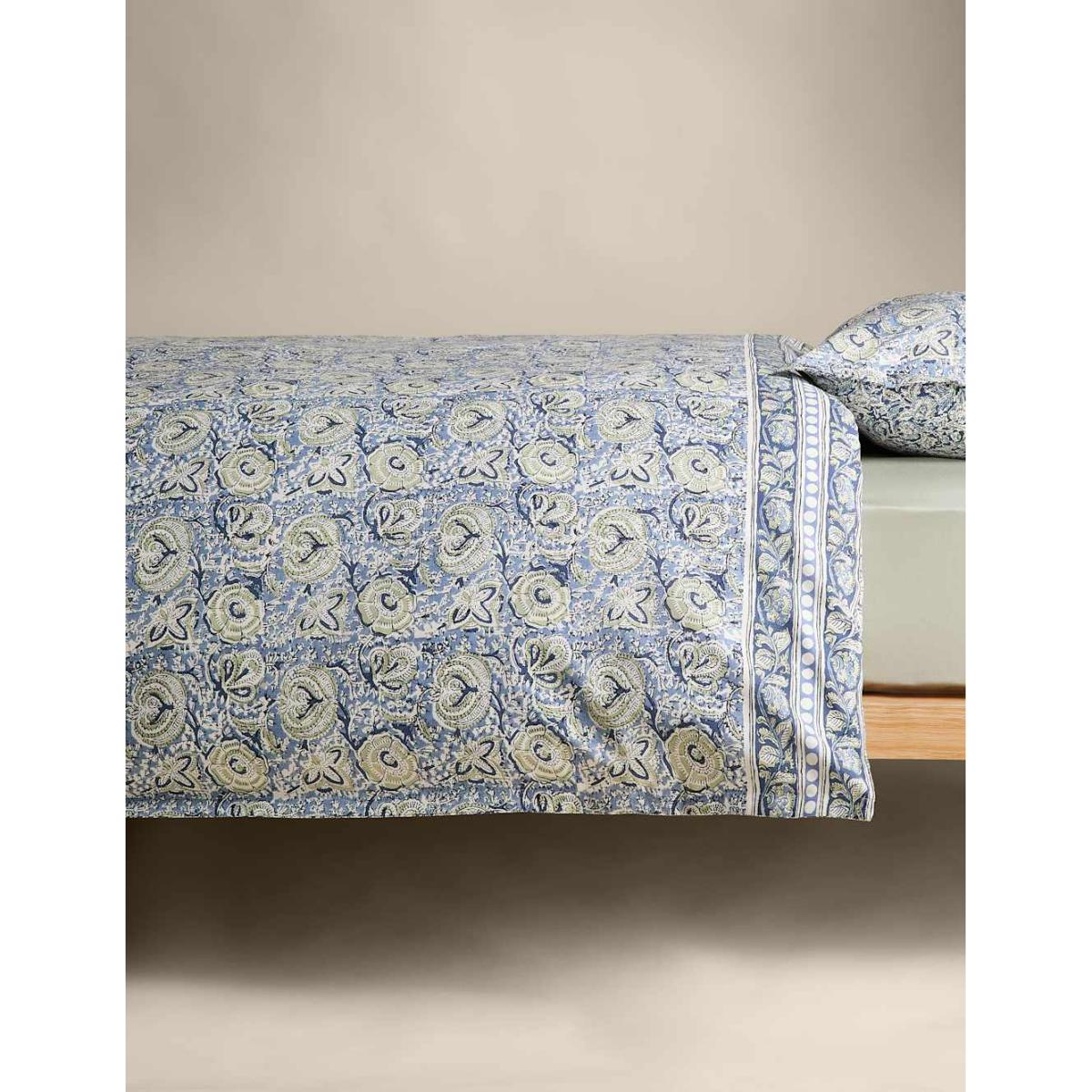 M&S Collection Pure Cotton Woodblock Floral Bedding Set - 6FT - Blue Mix, Blue Mix