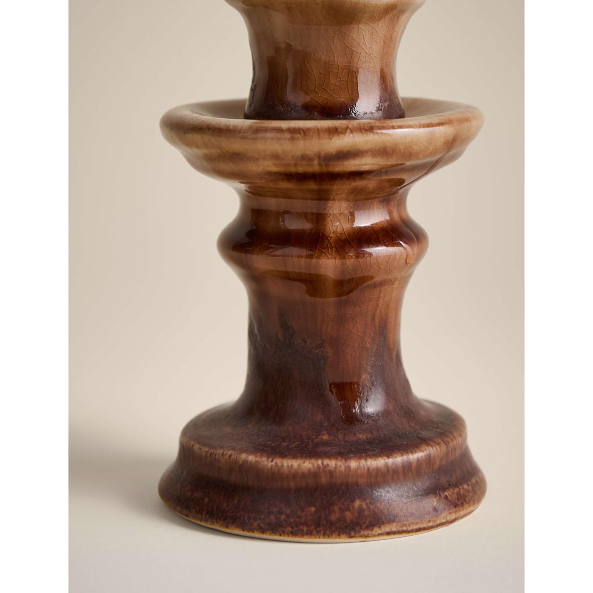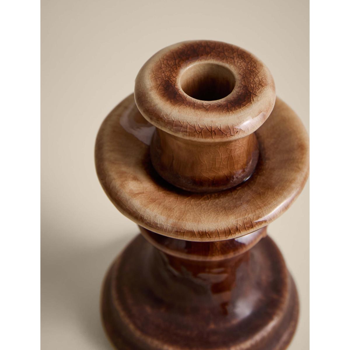 M&S Collection Reactive Glaze Ceramic Small Candle Holder - Brown, Brown