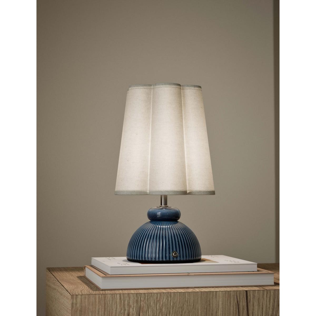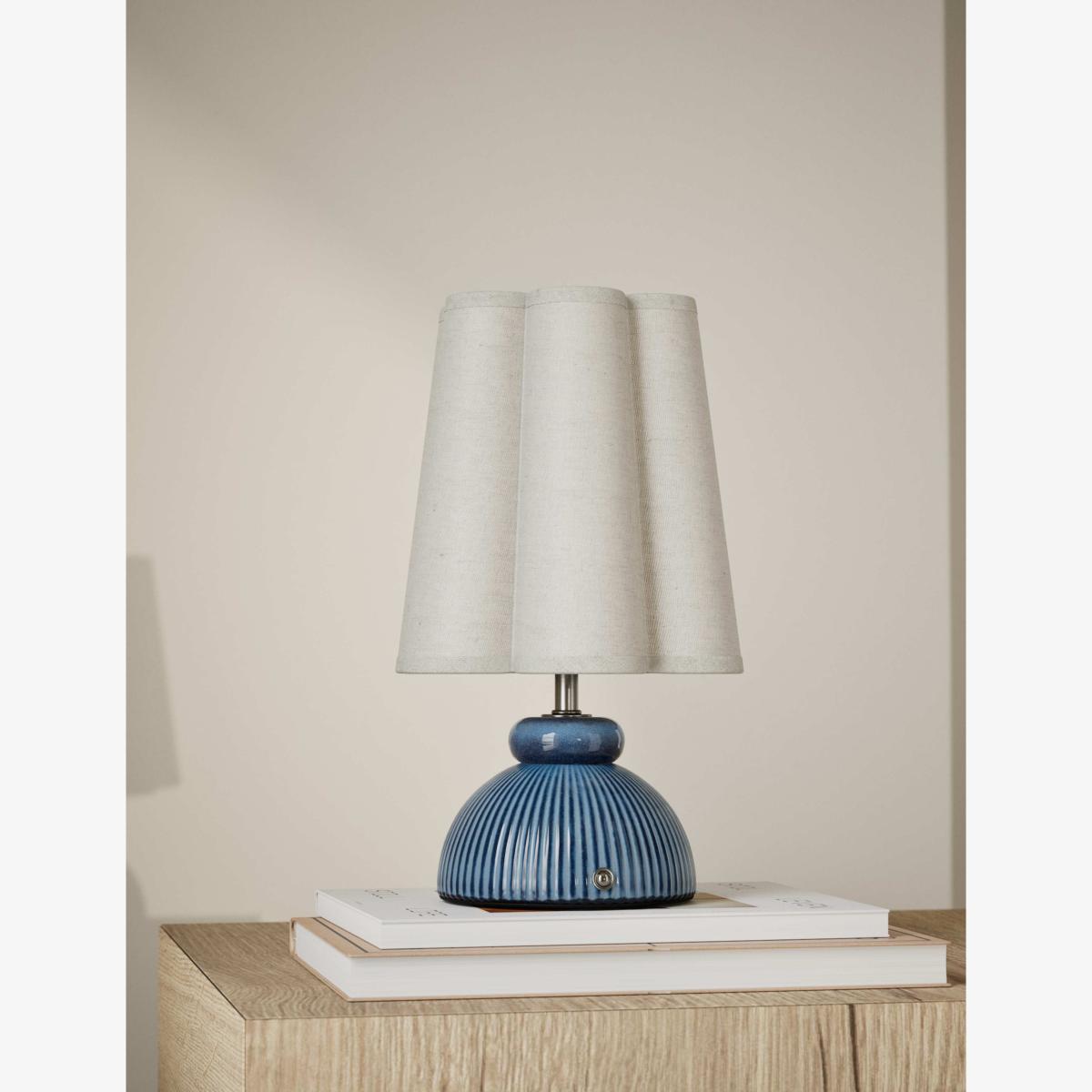 This handy table lamp has a rechargeable, wireless design, so you can place it anywhere you need some extra light. The ceramic base features ribbed detailing for a timeless look, while the flower-shaped scallop shade adds a decorative finish.