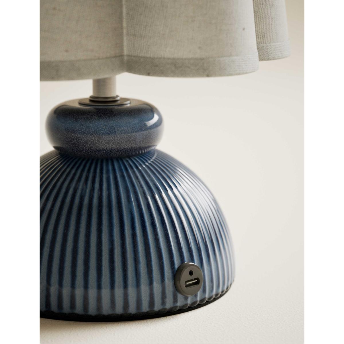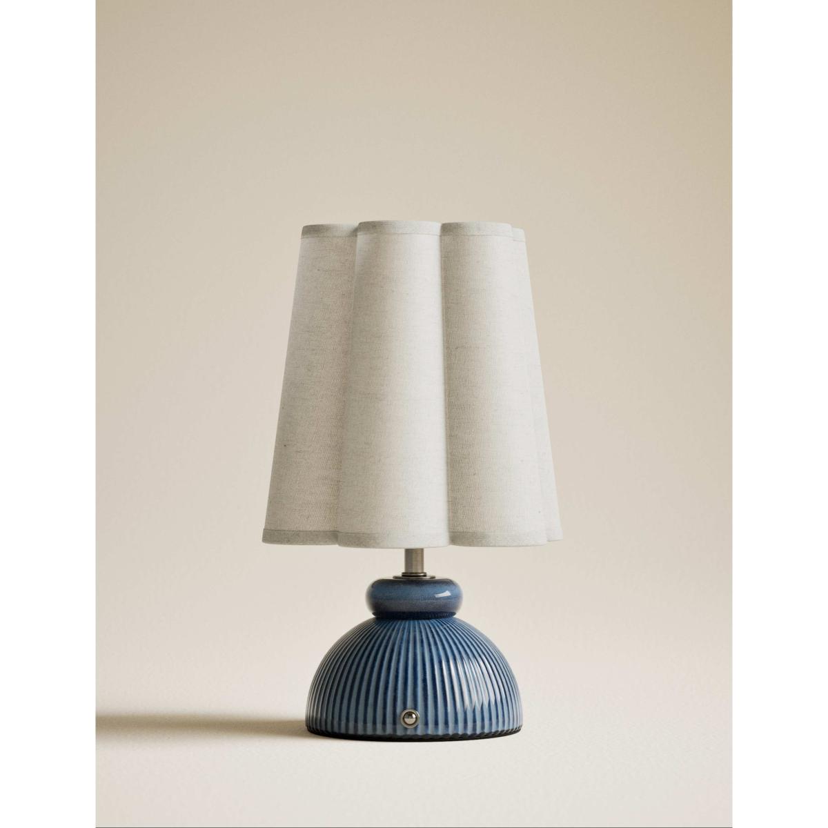 M&S Collection Ribbed Scallop Rechargeable Table Lamp - Blue, Blue