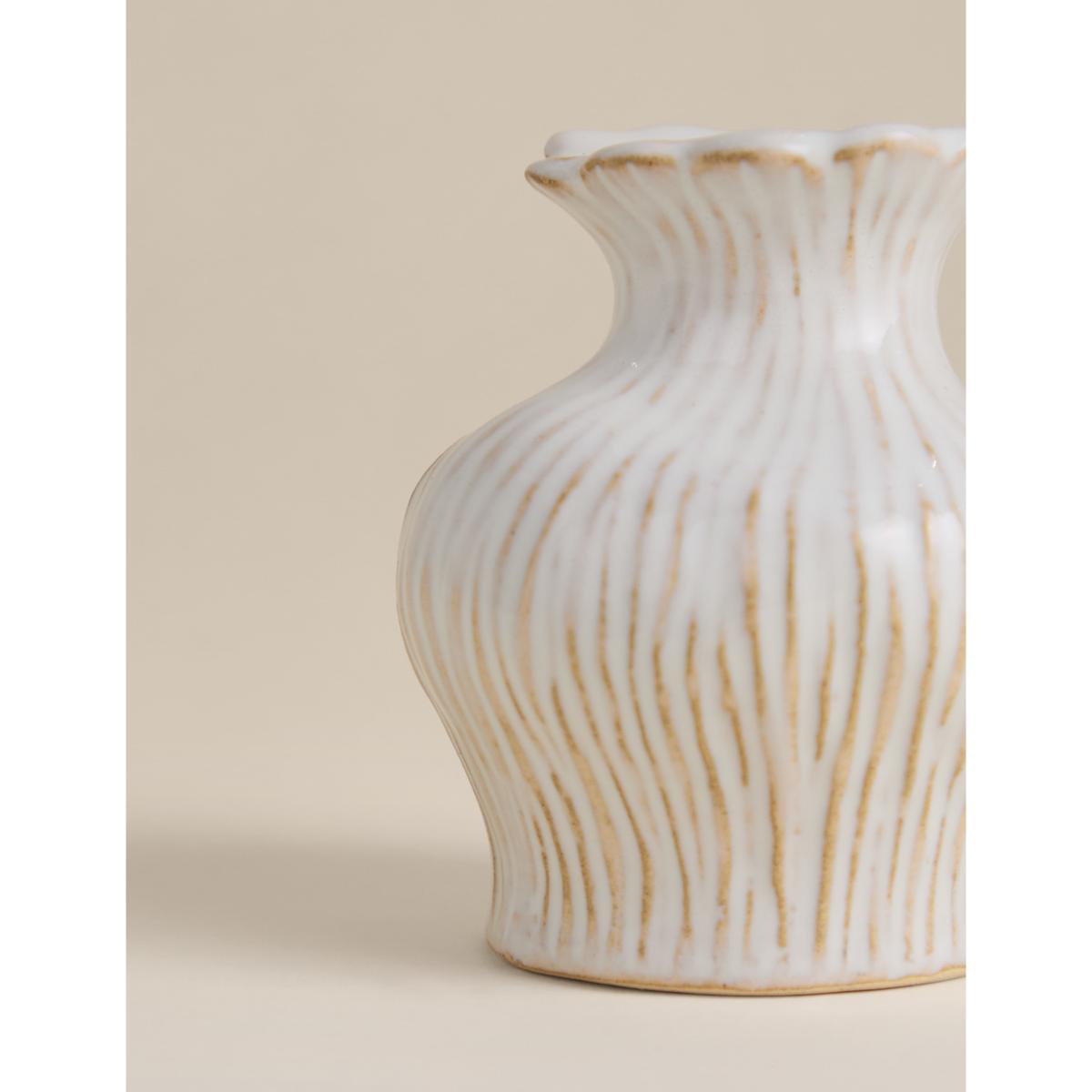 I love the simple, organic vibe of this candle holder - it’s a versatile piece that works beautifully in both contemporary and rustic interiors. The neutral tone lends itself well to layered table settings or as a feature on a mantel, creating a calm, understated focal point. Its ridged texture and tapered shape add a subtle tactile interest without overpowering other decor elements. For styling, try pairing it with a mix of tall and short candles in complementary shades, or use it as a statement piece on a neutral tablescape. It’s especially practical in understated, minimalist spaces or those with natural materials, as it enhances a serene and cohesive aesthetic.