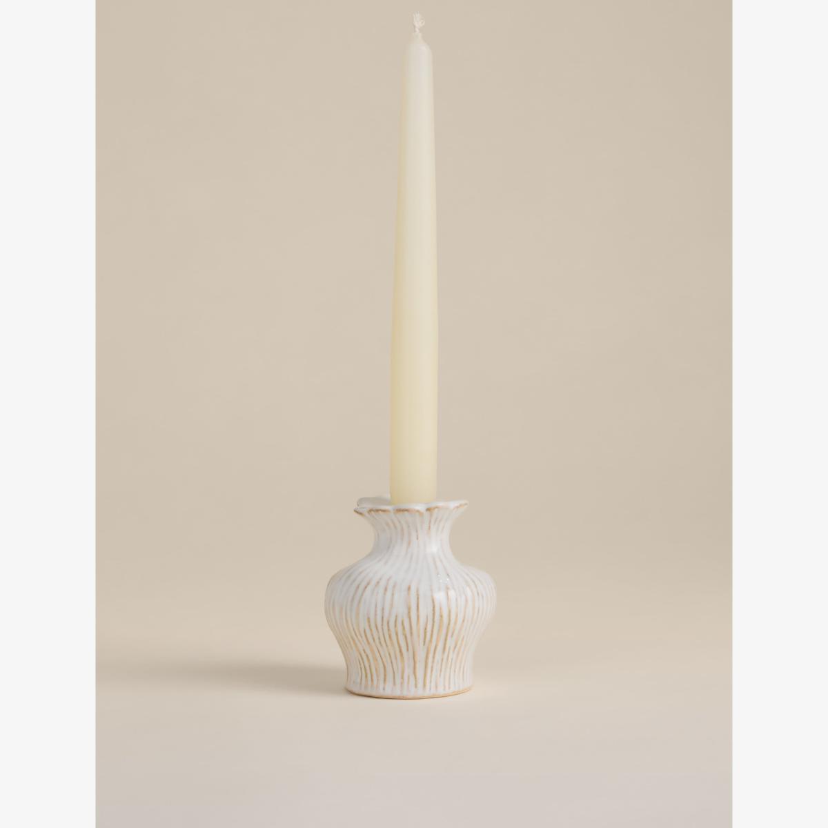M&S Collection Ridged Organic Tapered Dinner Candle Holder - Neutral, Neutral