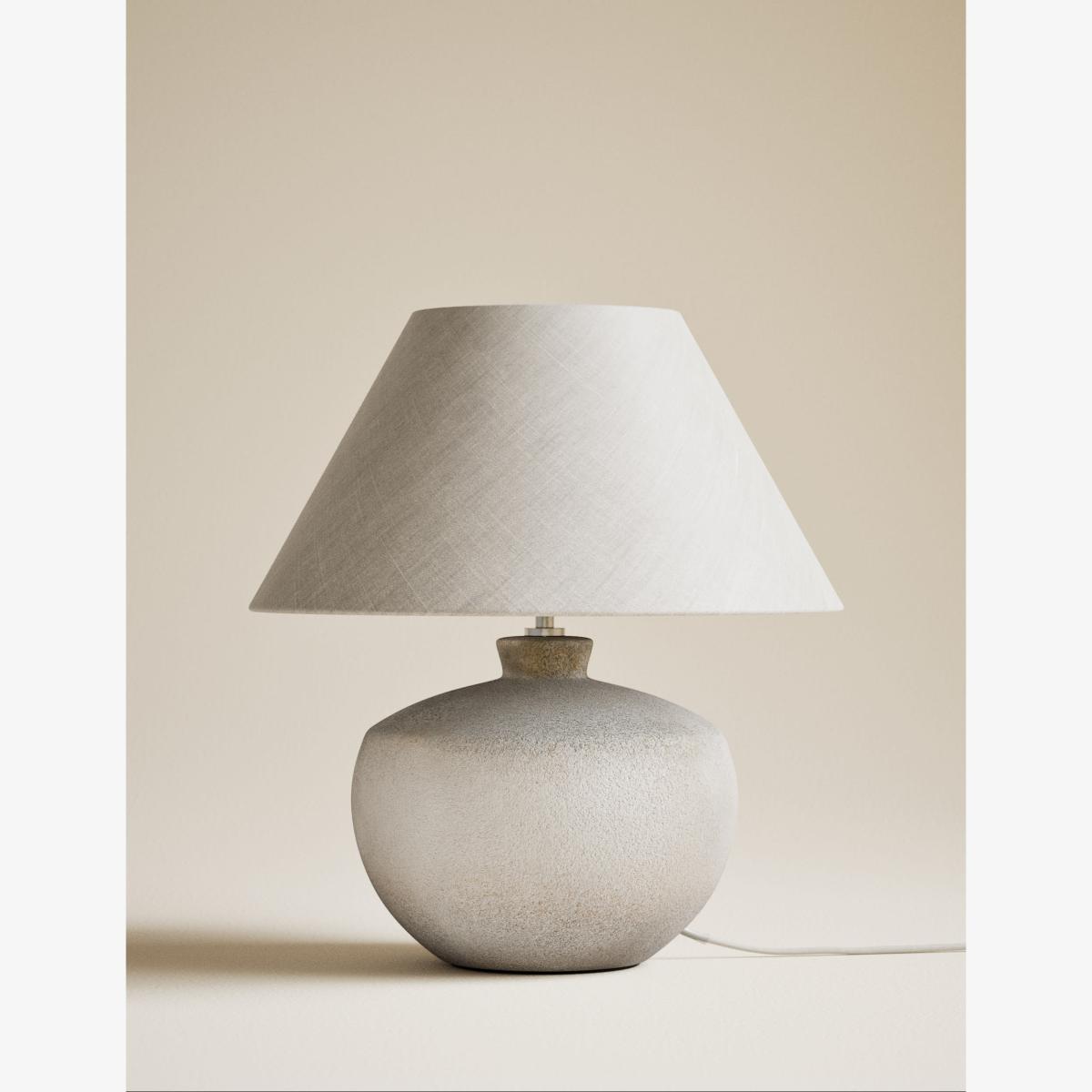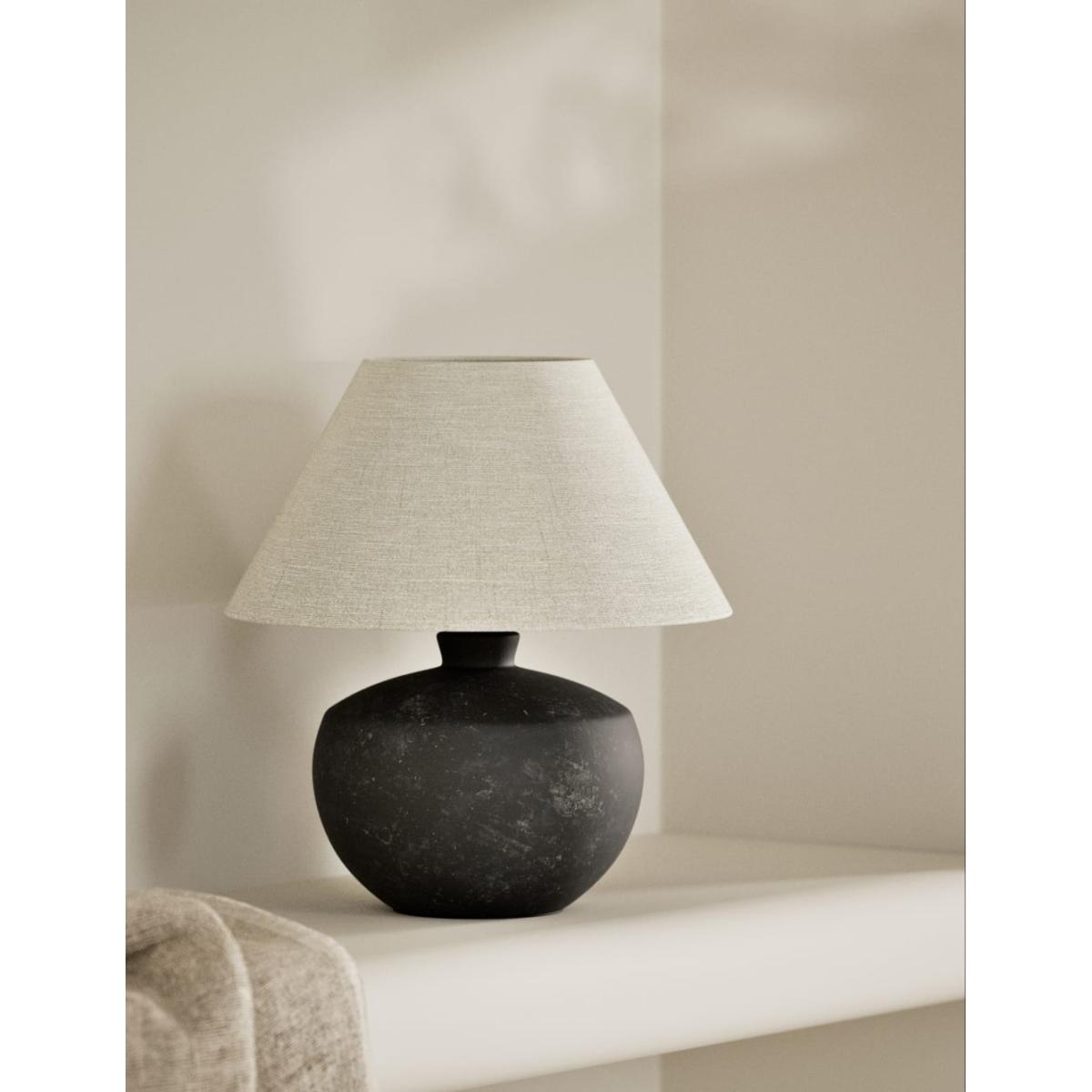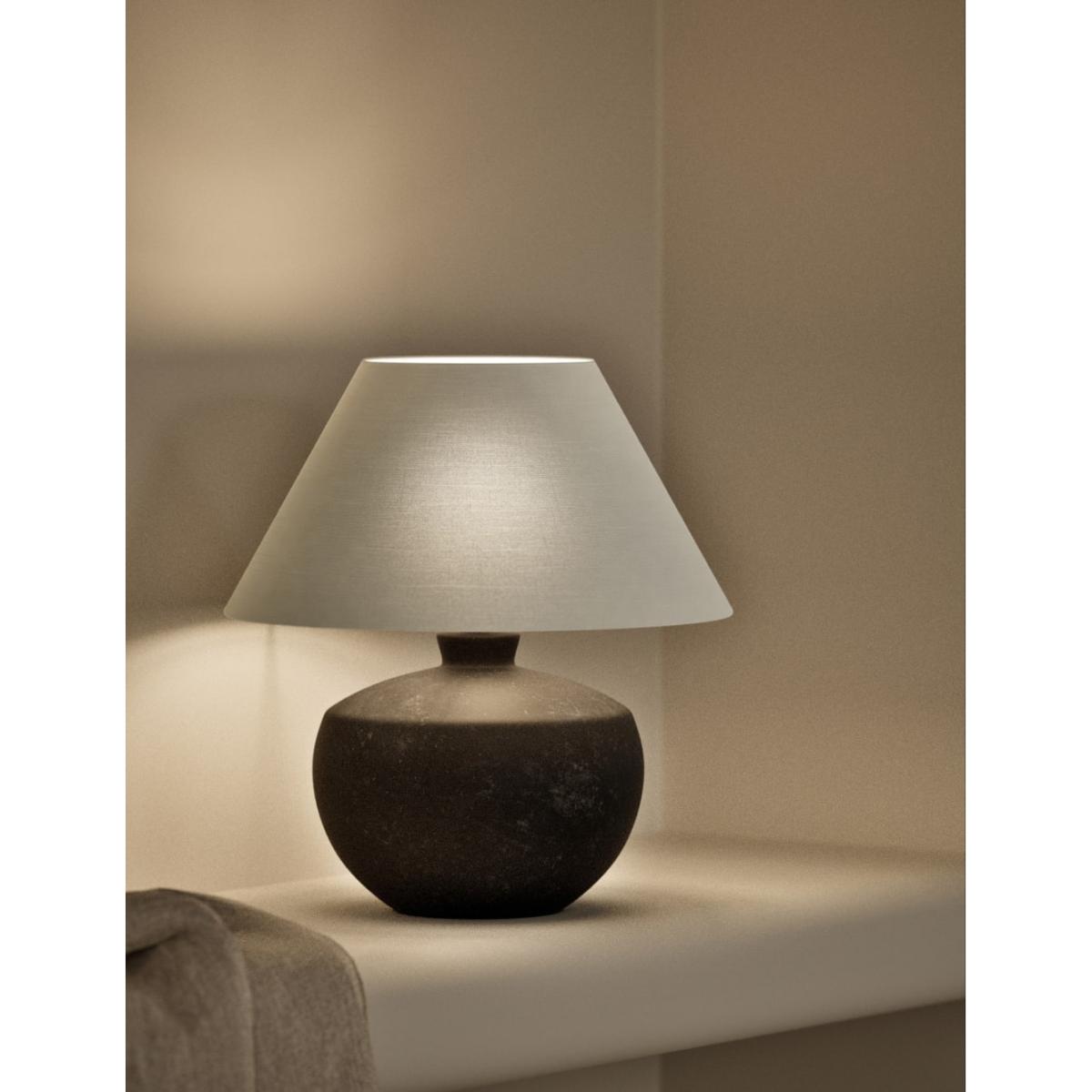 Add extra illumination where you need it with the Roma Urn table lamp. Its elegant shade diffuses the light for a welcoming atmosphere, while the curved ceramic base is finished with a spatter design to create artisanal detail.