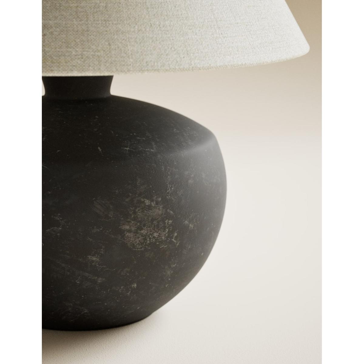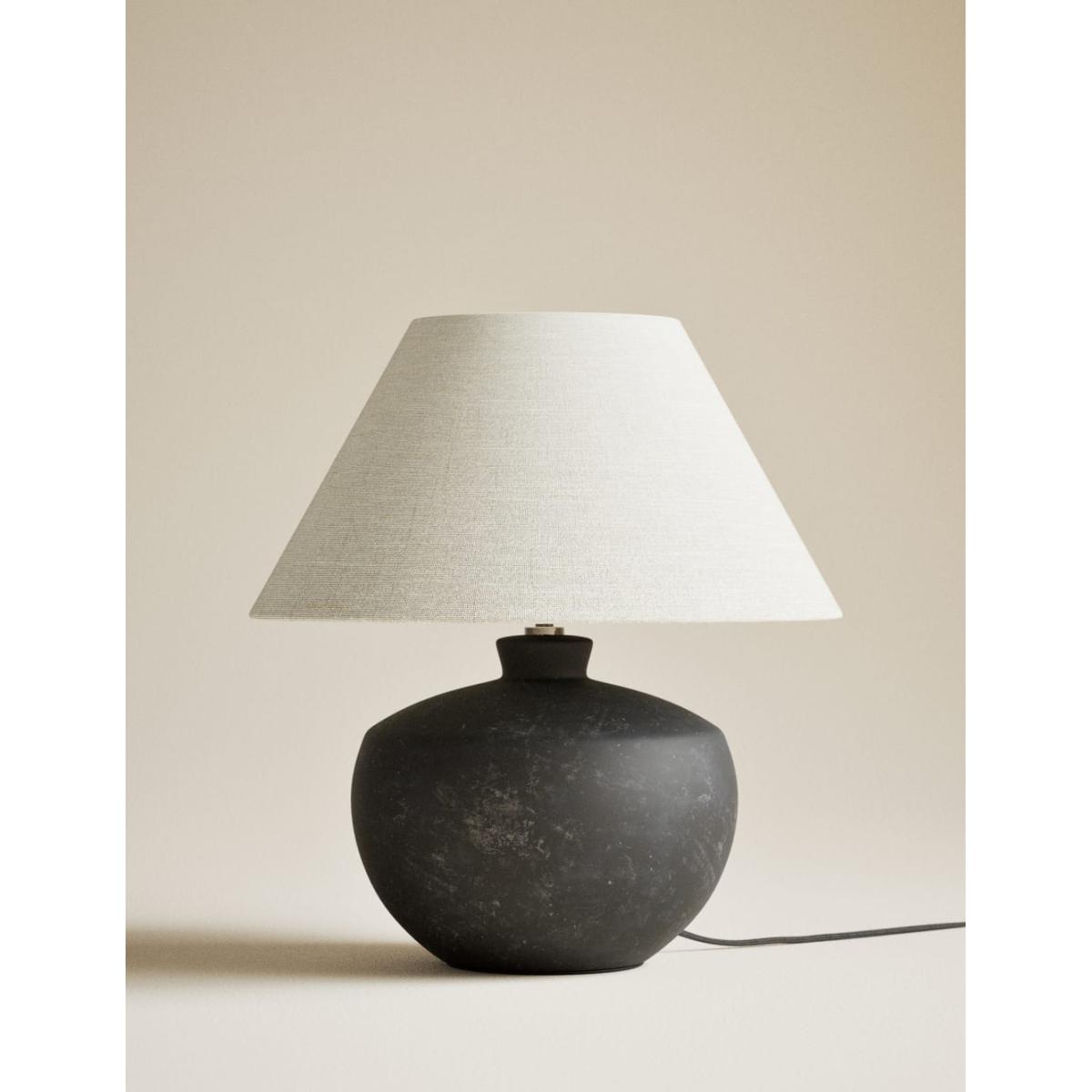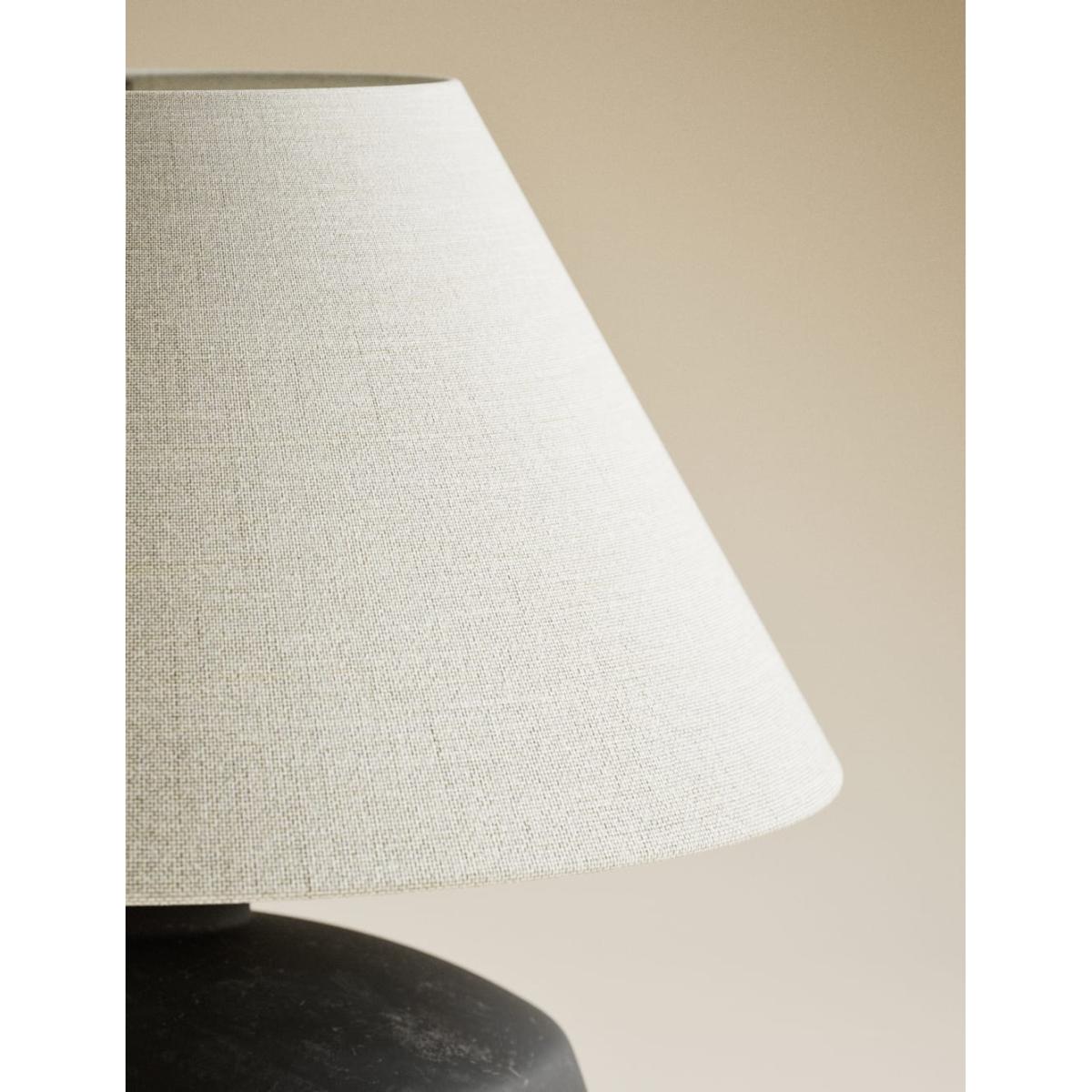 Add extra illumination where you need it with the Roma Urn table lamp. Its elegant shade diffuses the light for a welcoming atmosphere, while the curved ceramic base is finished with a spatter design to create artisanal detail.