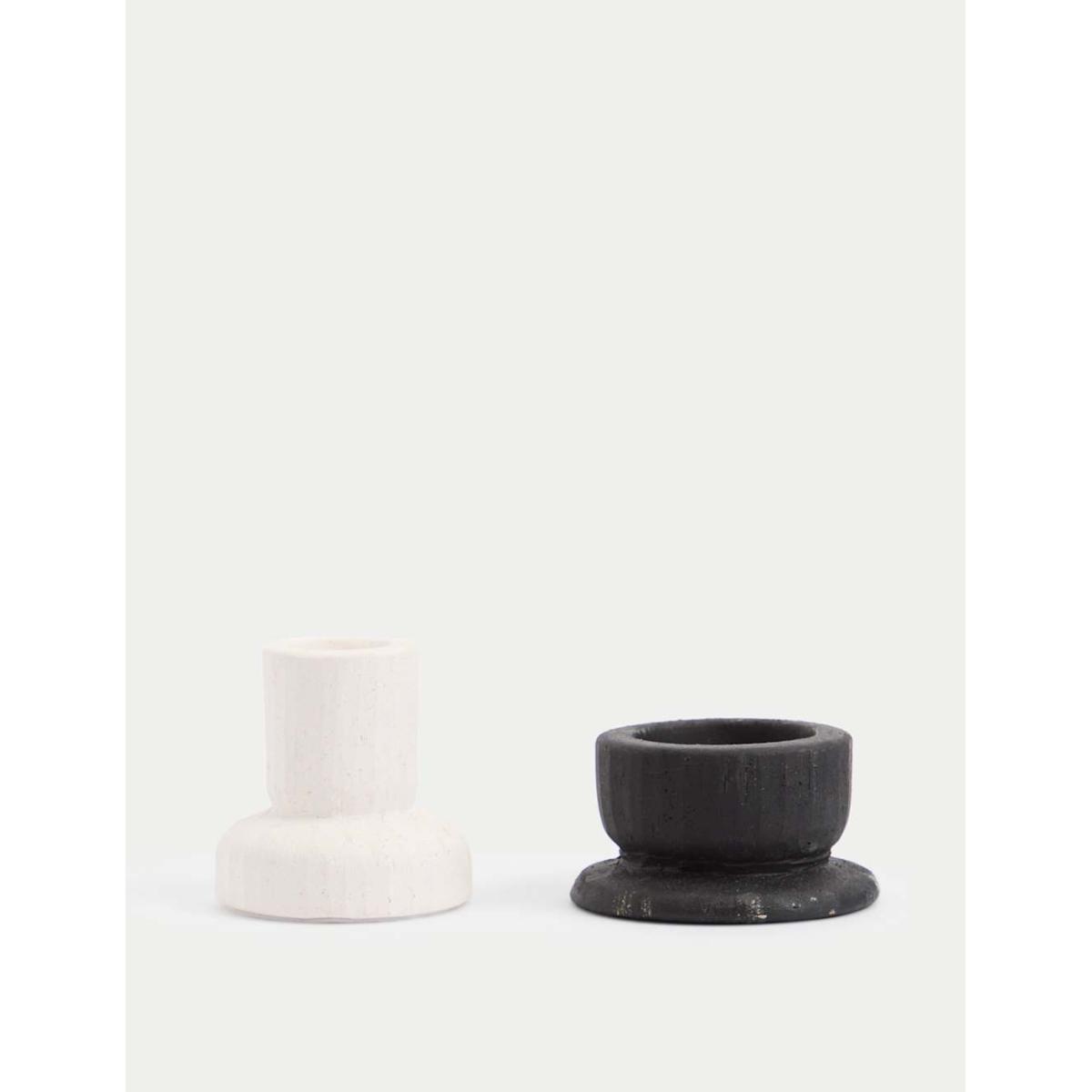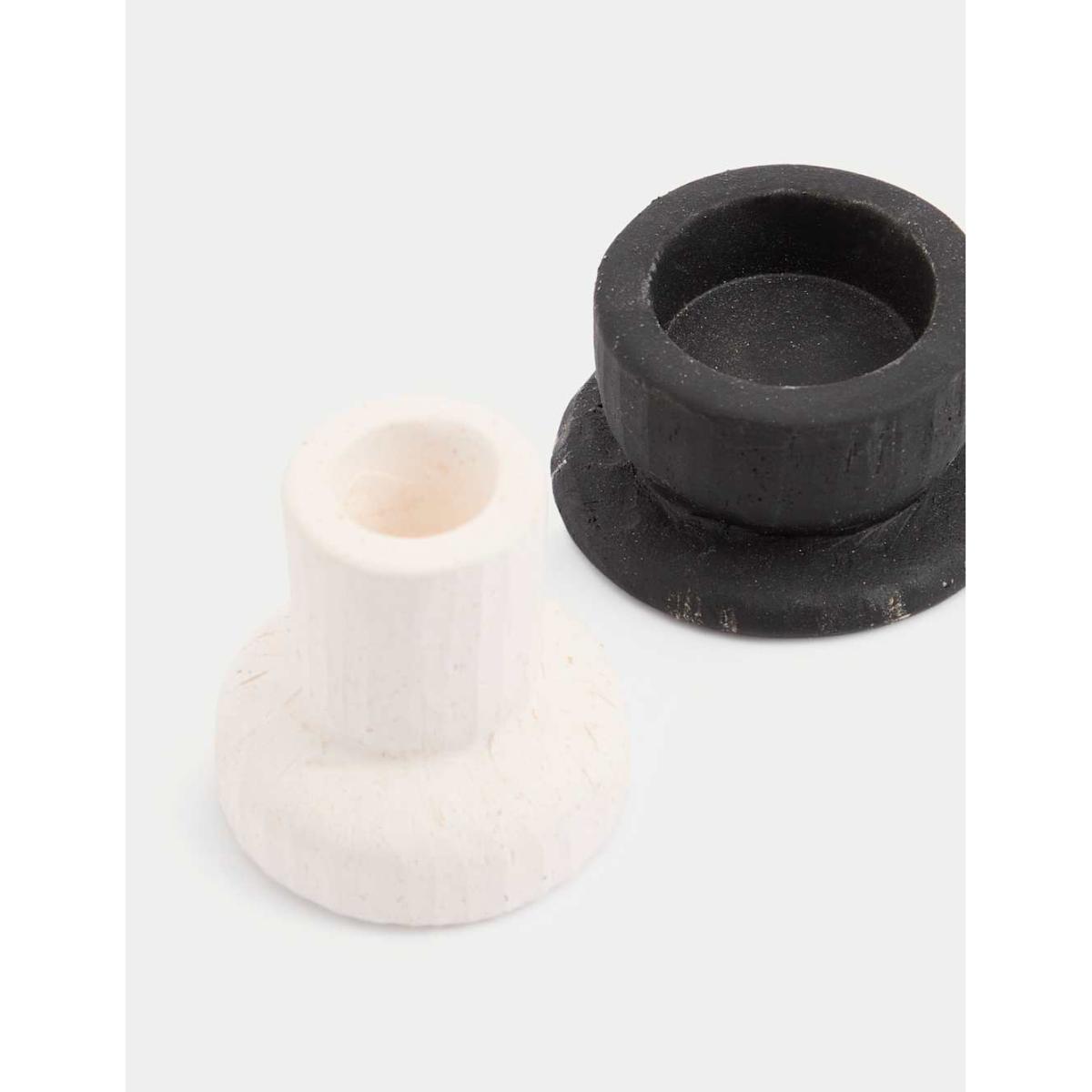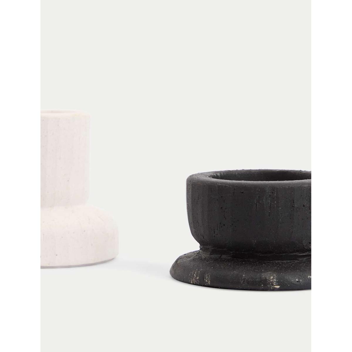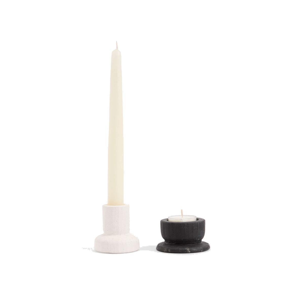 With their striking ceramic forms, these two candle holders add extra flair to your table. Contains one dinner candle holder and one for tealights.