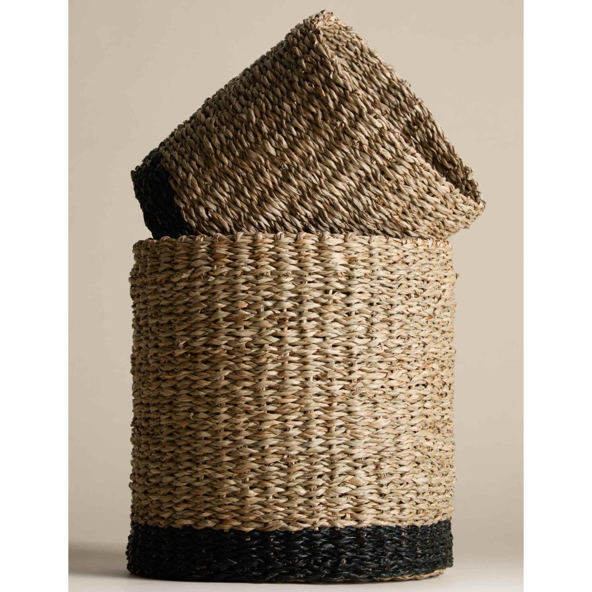 Bring natural style into your home with this set of two raffia and seagrass baskets. With one large and one smaller size, they’re perfect for storing or styling around your living space.