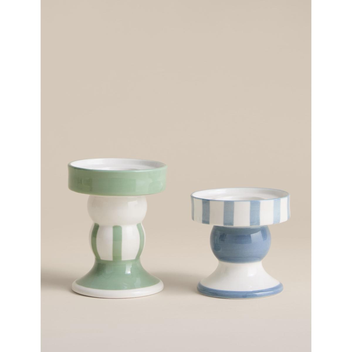 M&S Collection Set of 2 Striped Ceramic Candle Holders - Blue, Blue