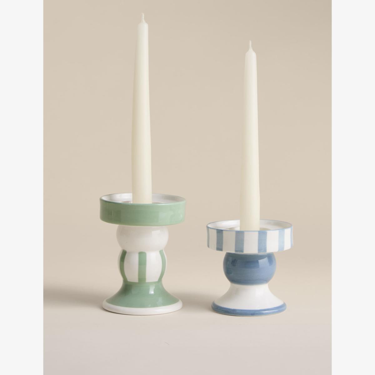 This set of two ceramic candle holders will add a timeless accent to your table settings. Both pieces feature a hand-painted striped design for a stylish look, and are perfect for displaying tapered dinner candles.