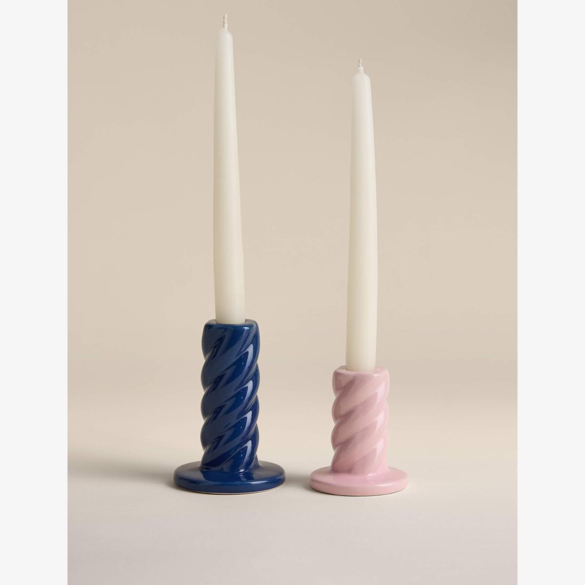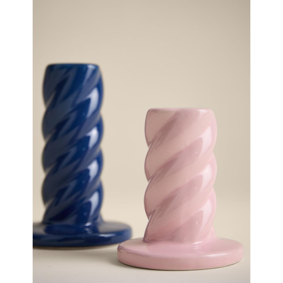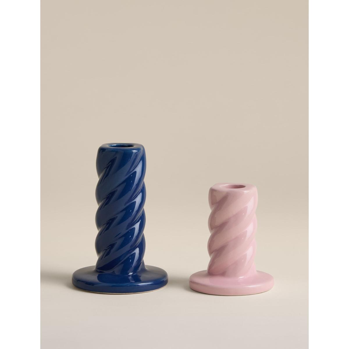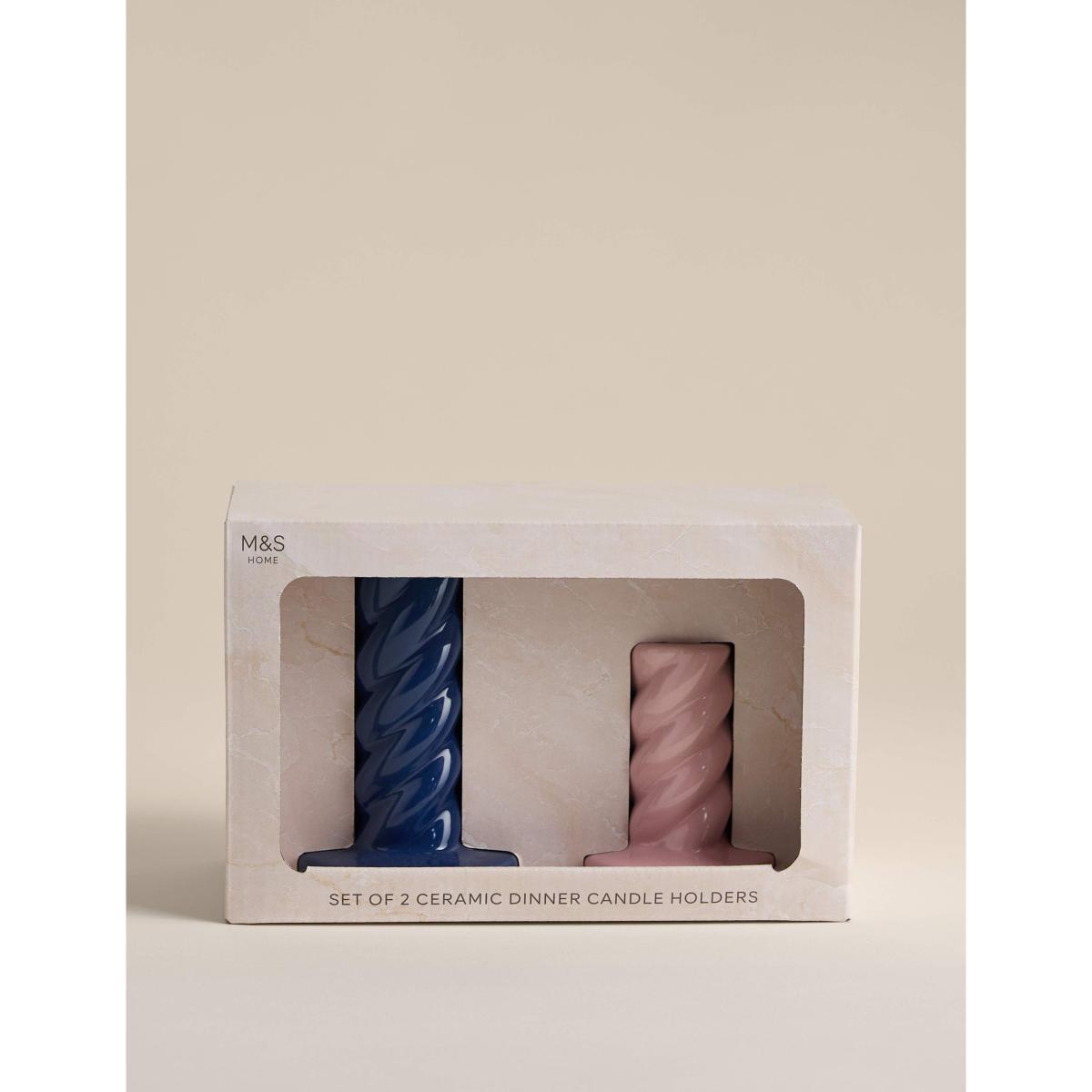M&S Collection Set of 2 Twist Ceramic Candle Holders - Multi, Multi