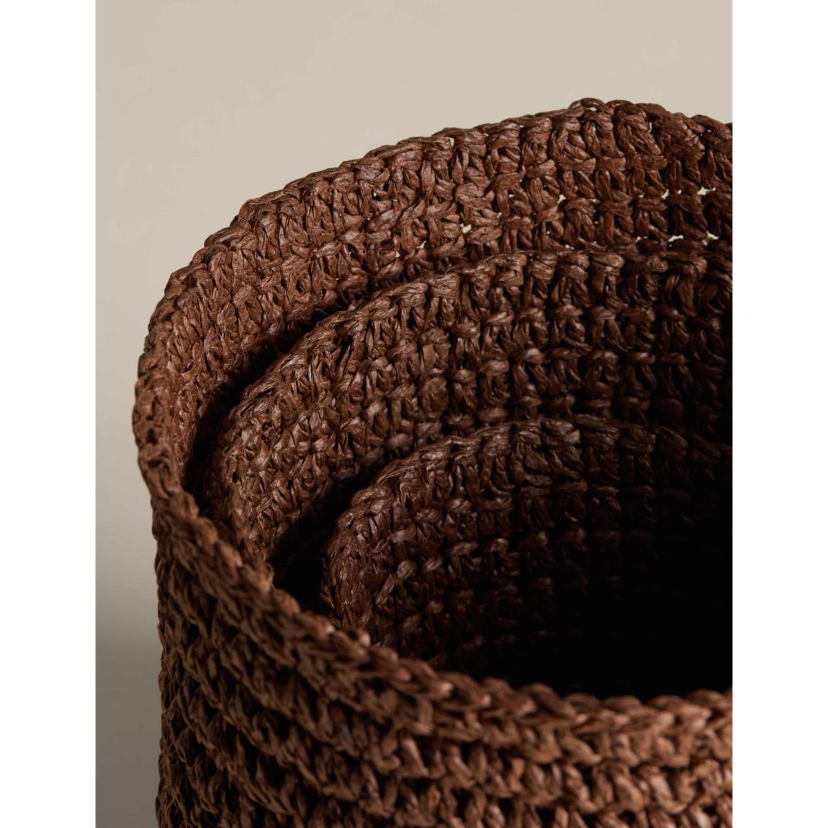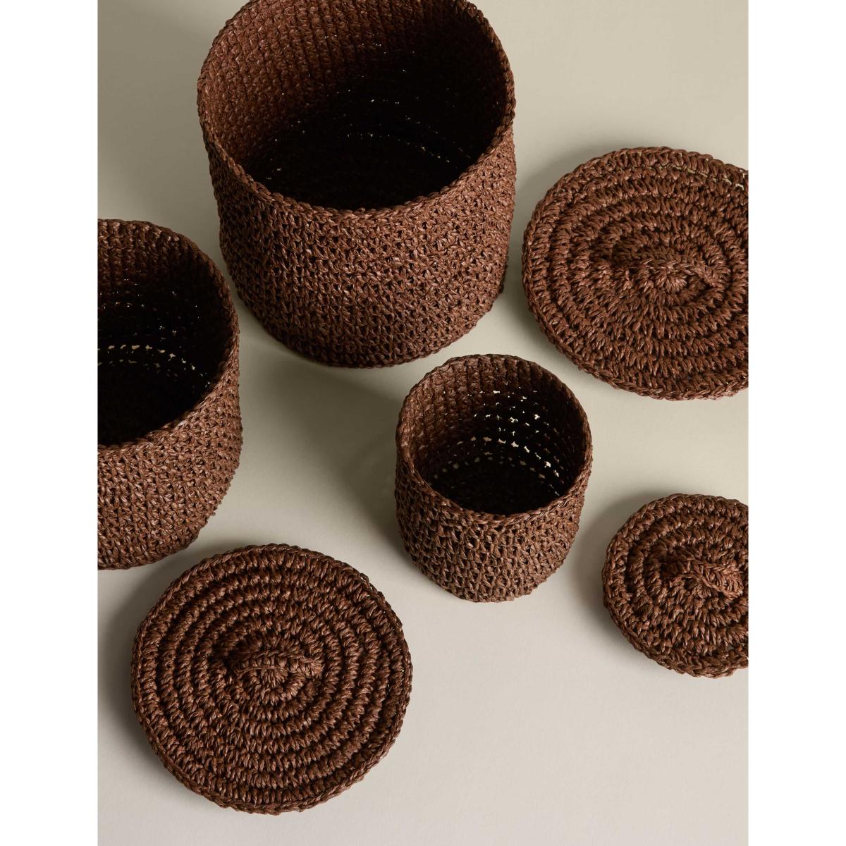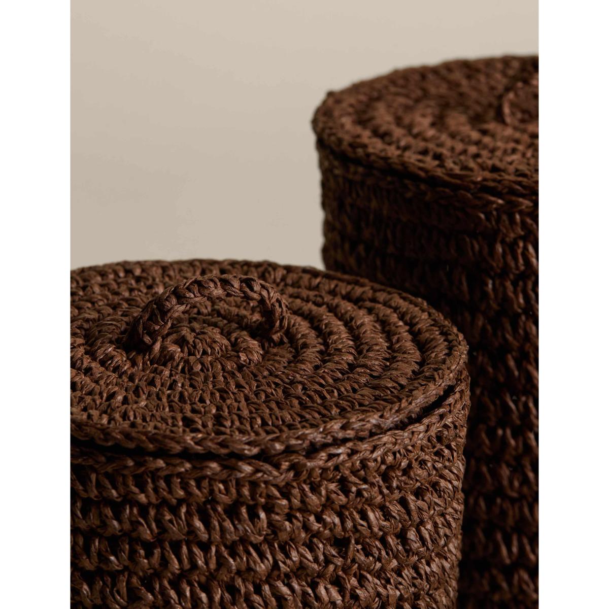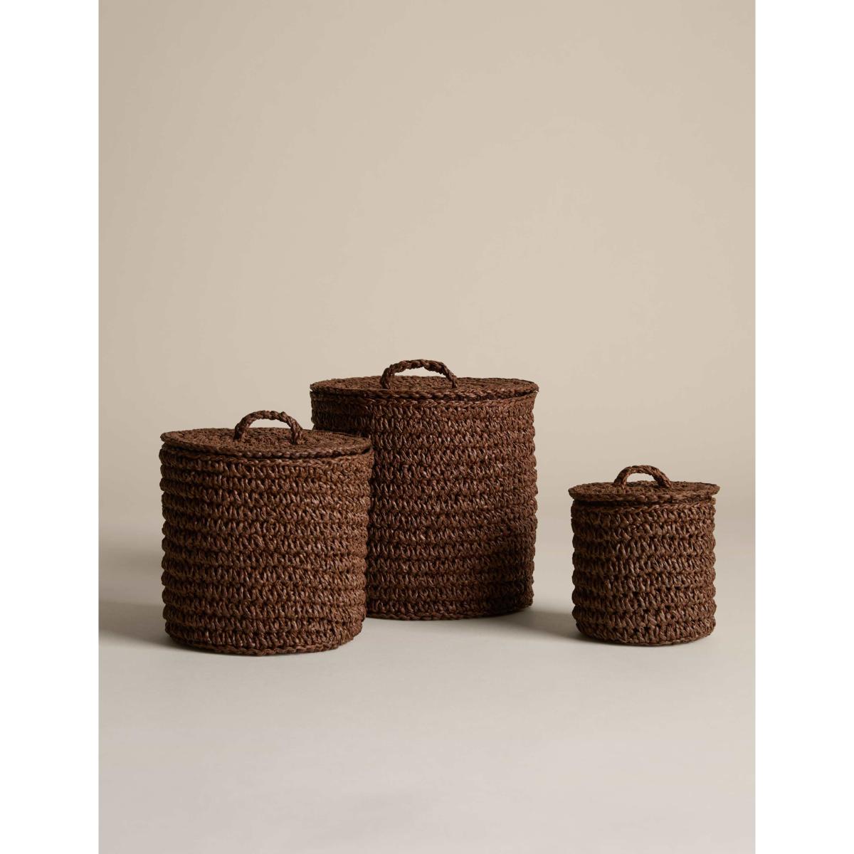 M&S Collection Set of 3 Raffia Small Lidded Pots - Brown, Brown