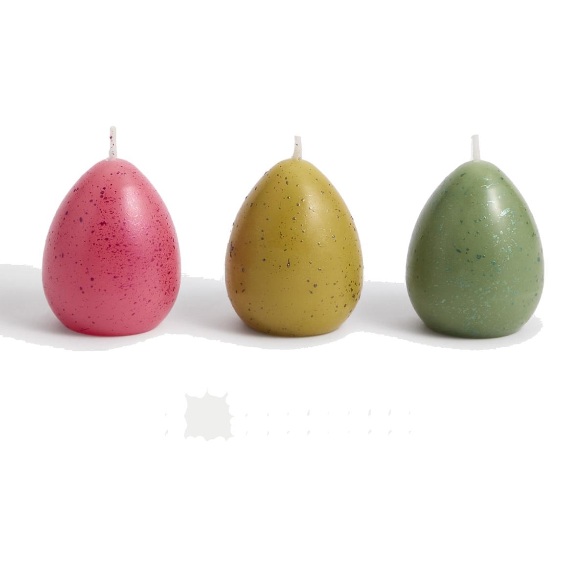 These egg-shaped candles are the perfect finishing touch for your table at Easter. They come as a set of three co-ordinating colours, each made from unscented wax with a stylish speckled finish.