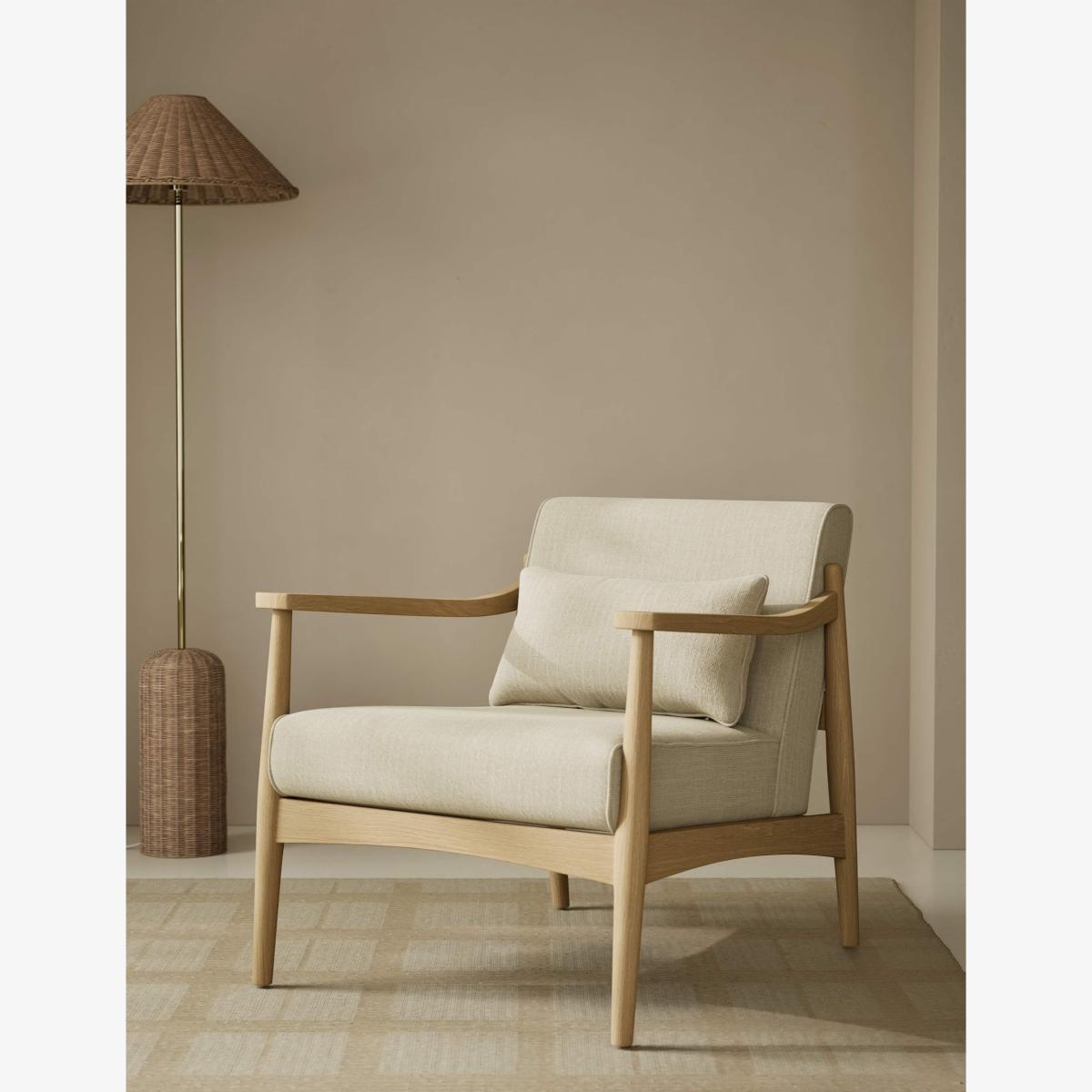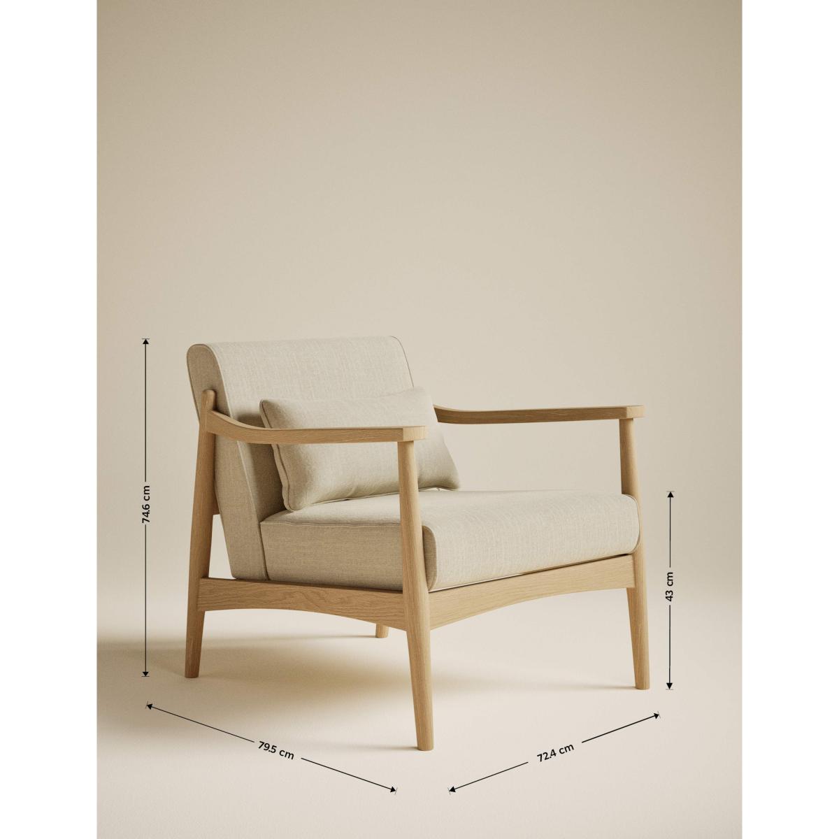 This Sherwood armchair combines a mid-century design with modern detailing. It features a solid, light oak frame, with gently splayed arms for an elegant shape. The cushioned seat and back offer supreme comfort, while the stain-resistant chenille fabric adds a practical finish. We’re so confident our furniture is built to last, our industry-leading guarantee covers any manufacturing failure on all furniture. That’s our promise, and why our furniture comes with a 10-year guarantee that you can trust. Excludes: outdoor furniture and any issues that are a result of normal wear and tear, improper care or accidental damage.