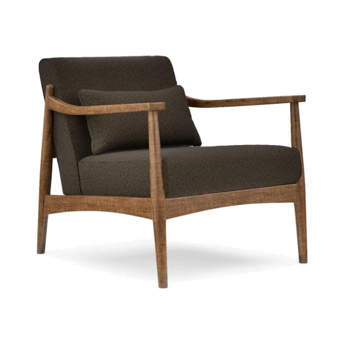 Our Sherwood Armchair offers a timeless blend of mid-century design and modern comfort. With its elegant finish and distinctive arm profile, this chair effortlessly combines style and comfort. The low-profile silhouette adds a touch of sophistication, and is equally as striking from all angles, making it perfect for any space. The beautifully crafted wooden frame made from solid oak in a dark finish ensures durability, and is complimented by our curated selection of fabrics.
