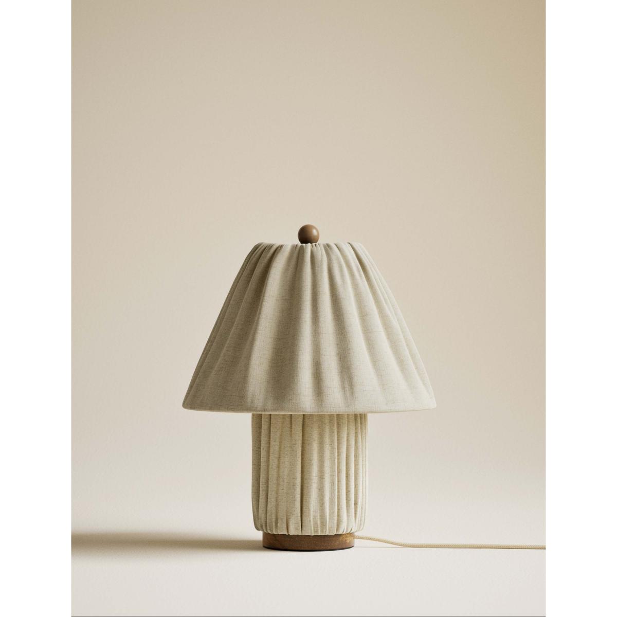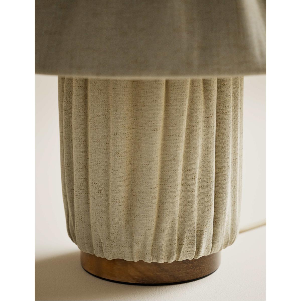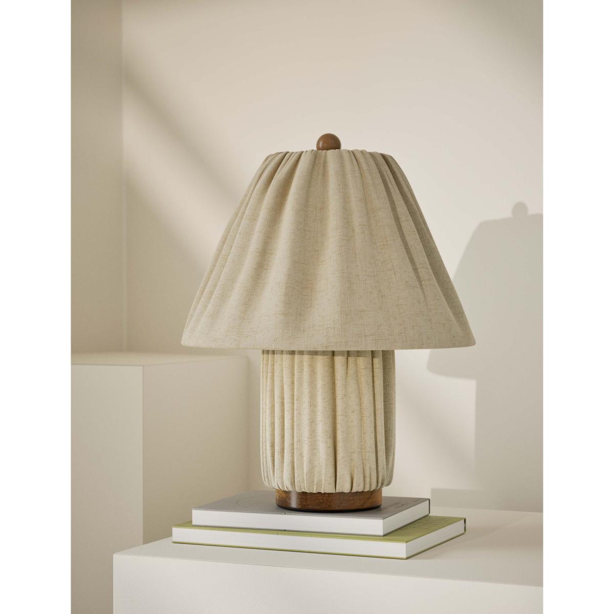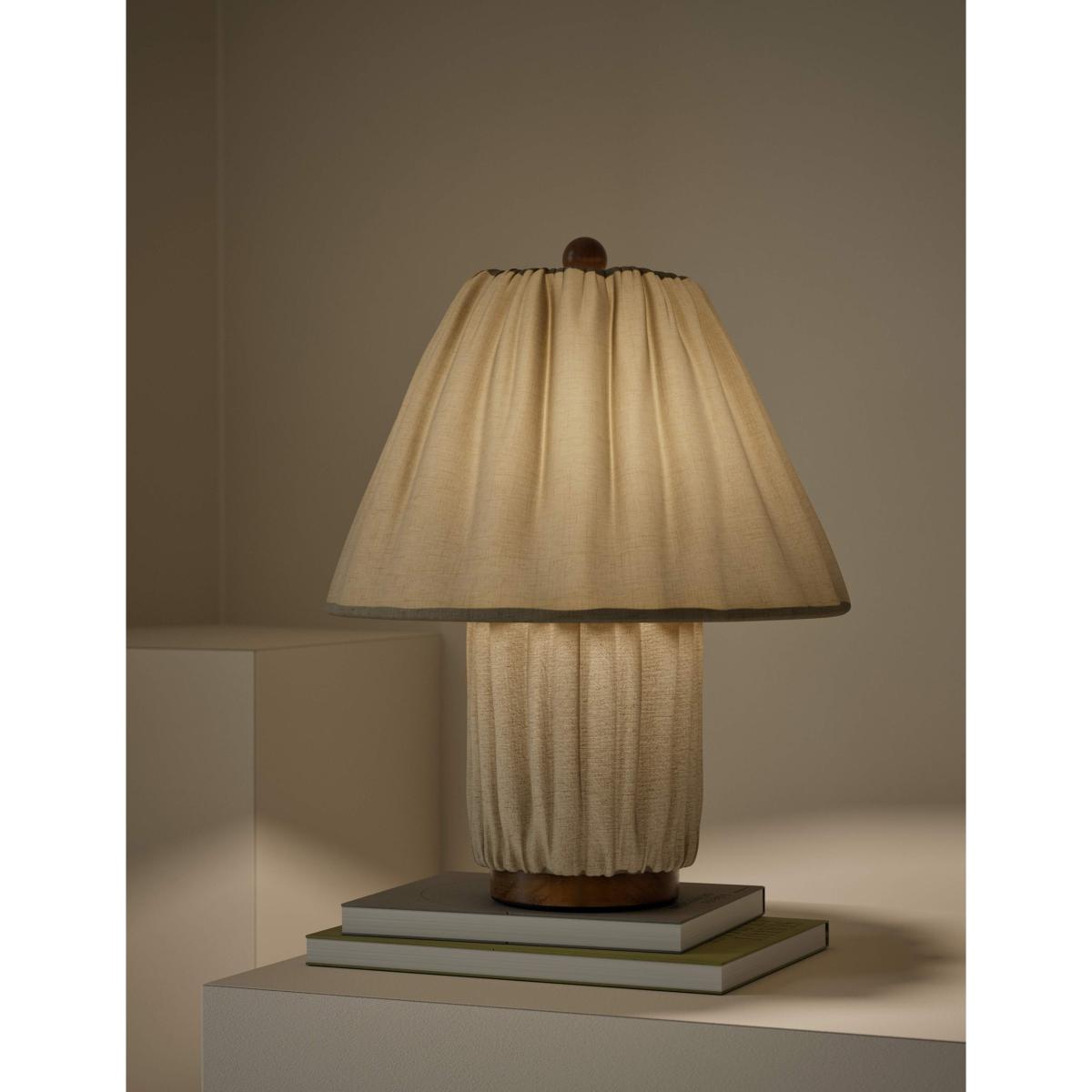 Bring a welcoming feel to your space with this stylish table lamp. Both the shade and the stand are covered with pleated fabric for a softly textured look that gently diffuses the light.