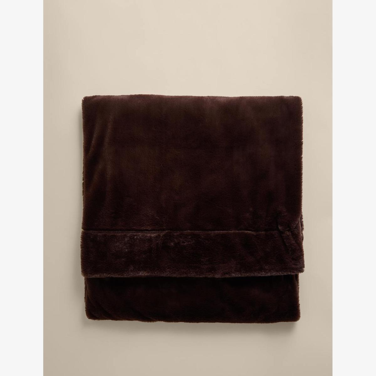 M&S Collection Supersoft Faux Fur Throw - XL - Chocolate, Chocolate,Dark Navy,Cream,Neutral