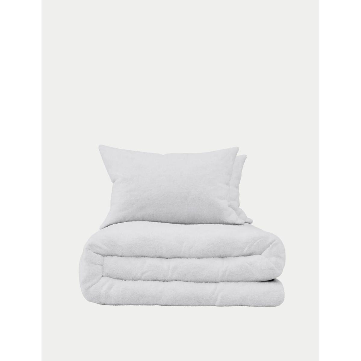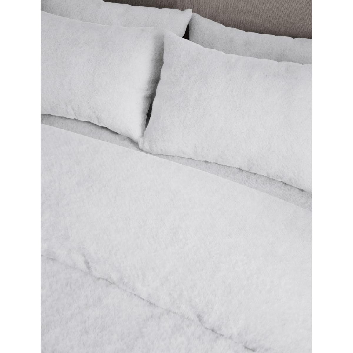 M&S Collection Teddy Fleece Bedding Set - SGL - White, White,Charcoal,Neutral,Grey
