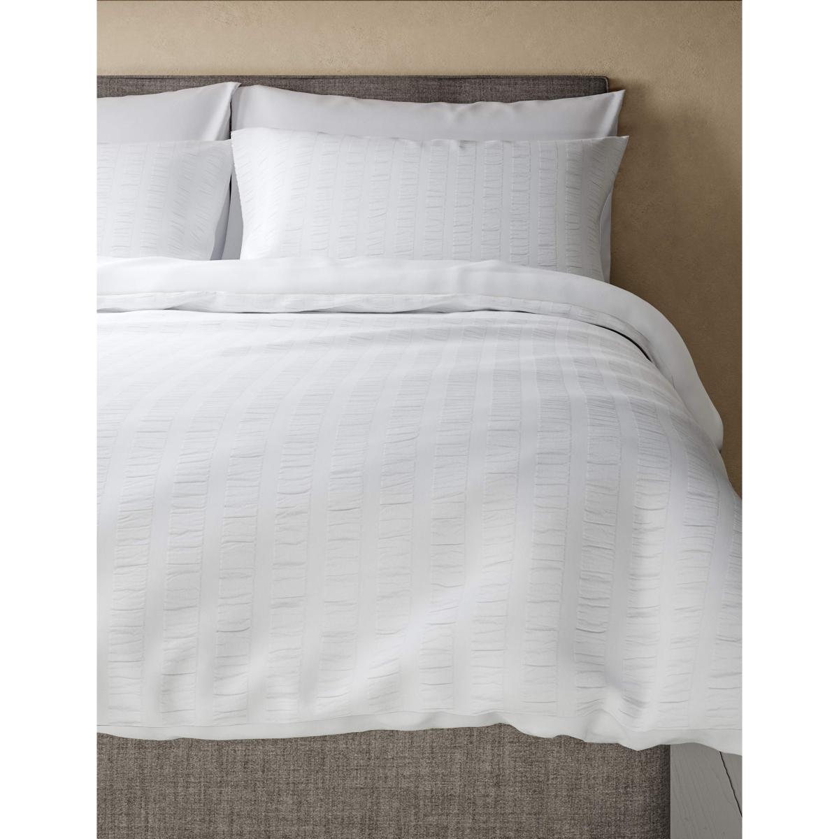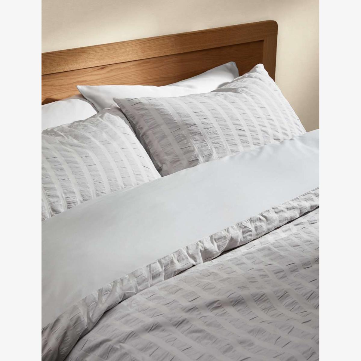 M&S Collection Unisex Pure Cotton Striped Seersucker Bedding Set - DBL - Grey, White,Grey