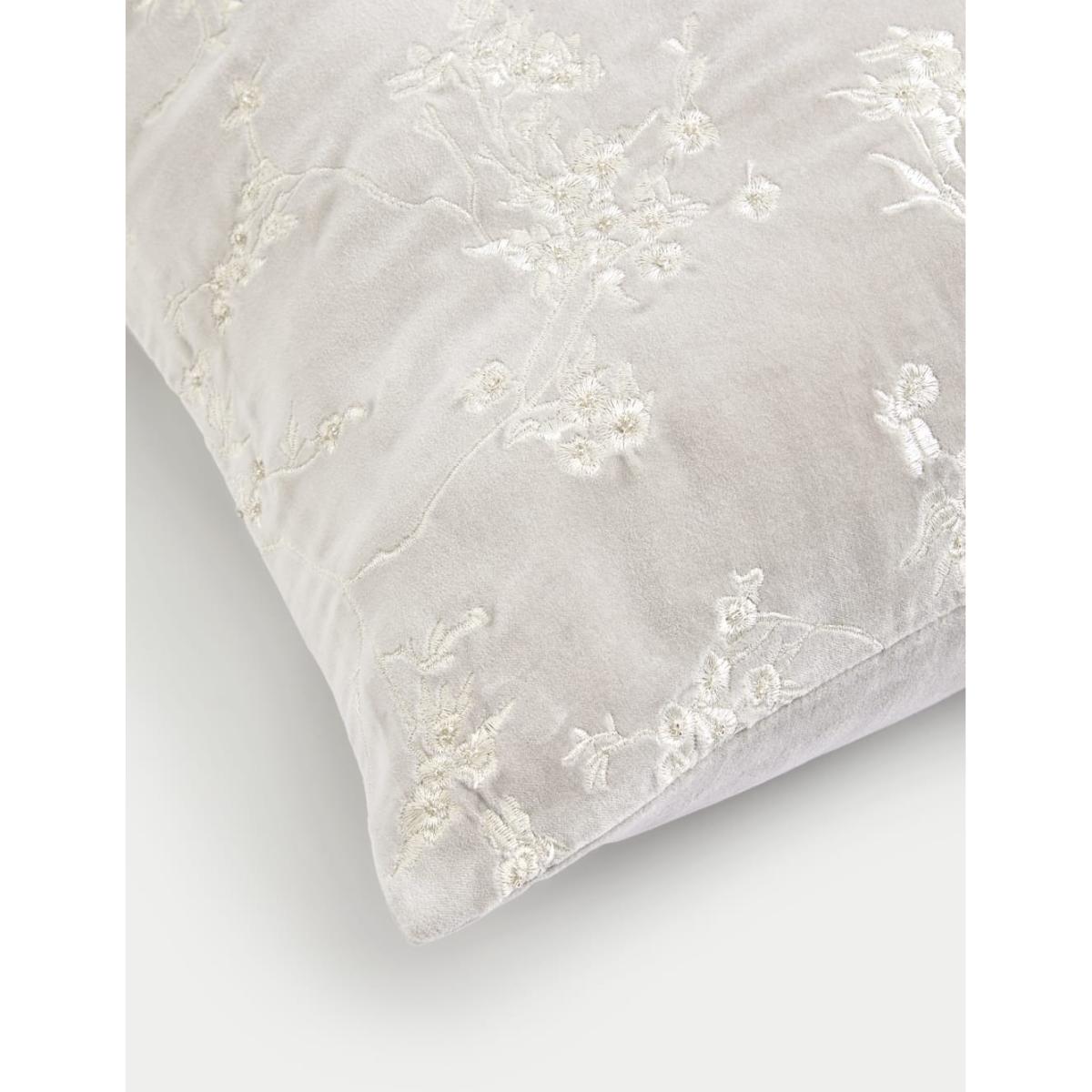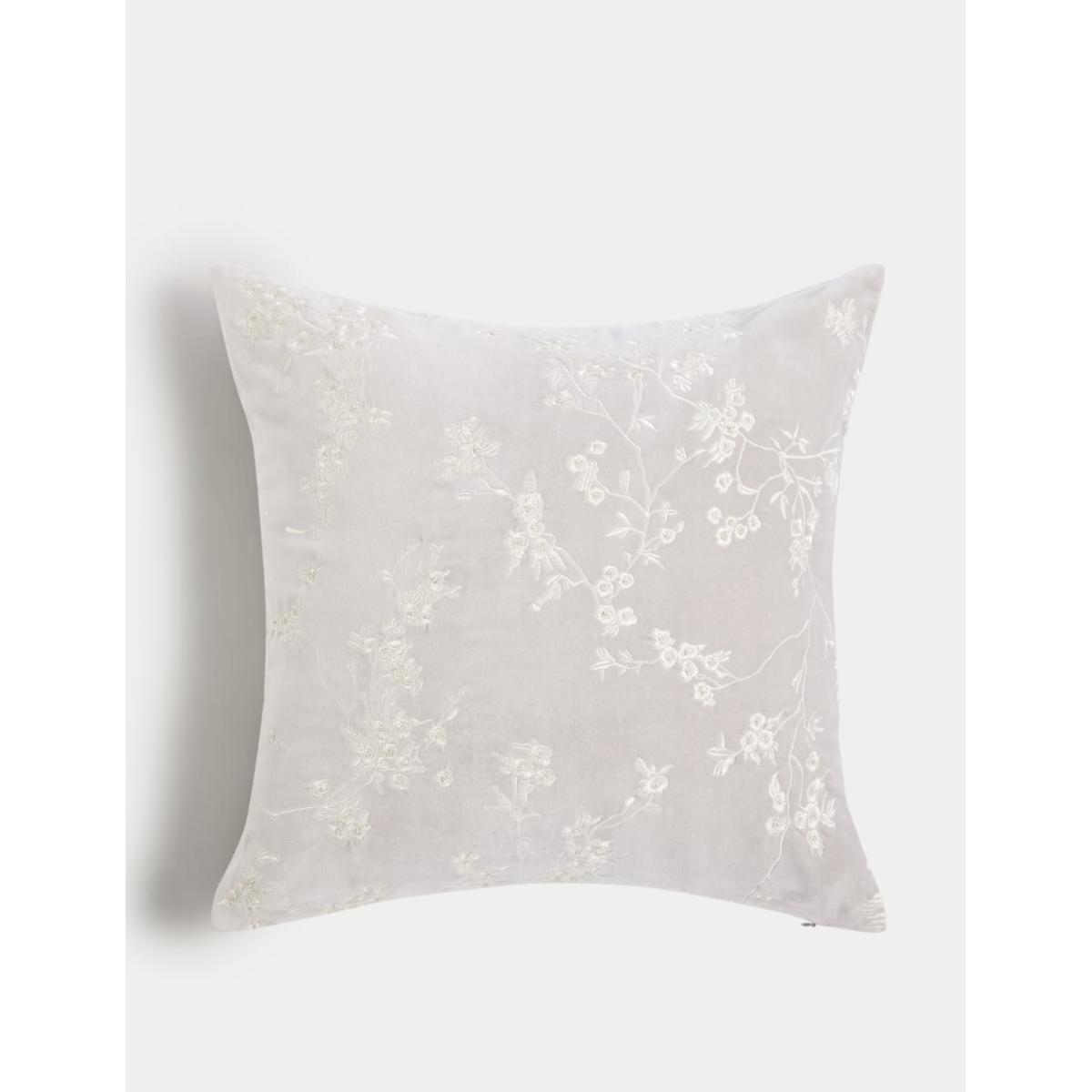 Bring a floral flourish to your living space with this embroidered cushion. This piece is made from a plush pure cotton velvet for a luxurious feel, and has a feather filling for added comfort.
