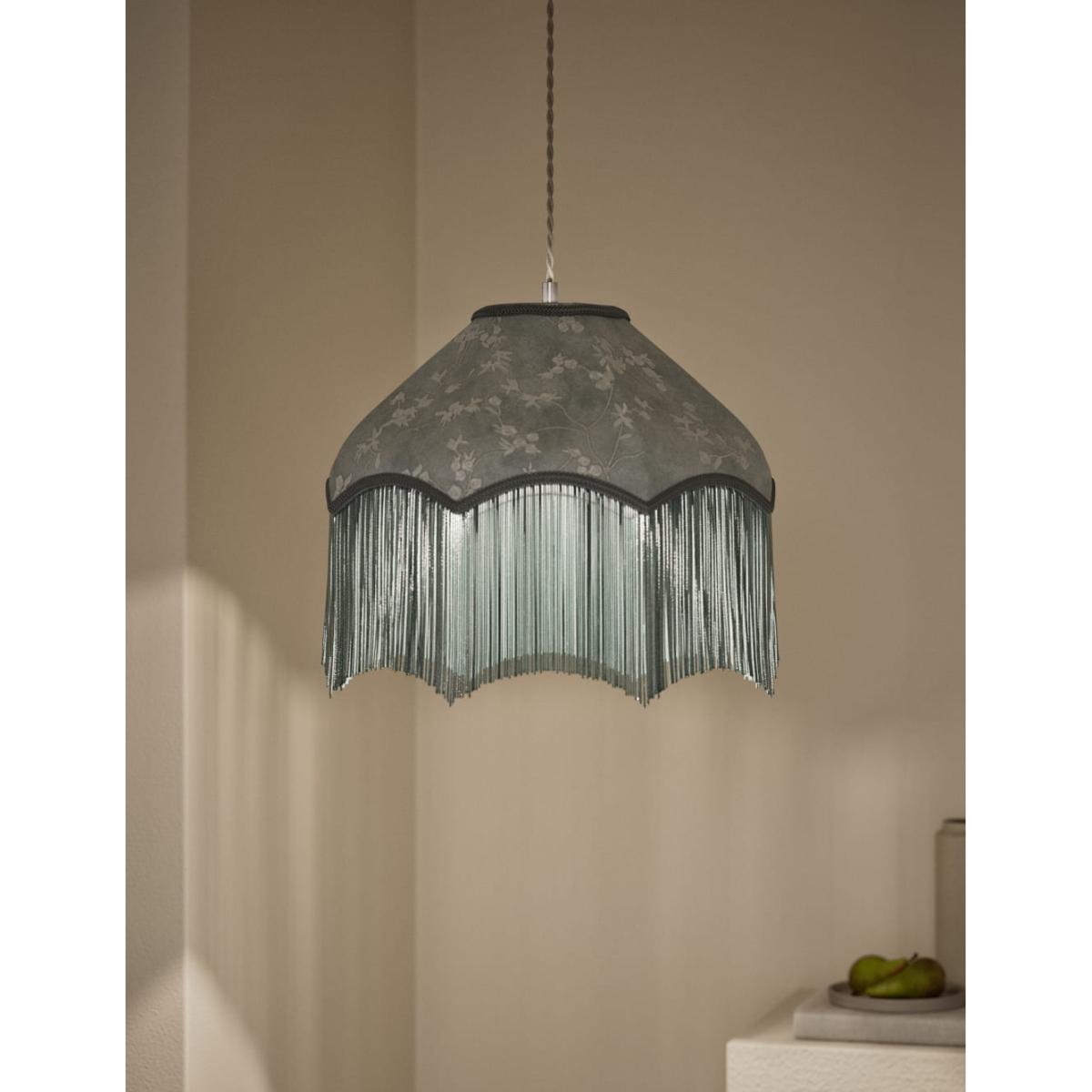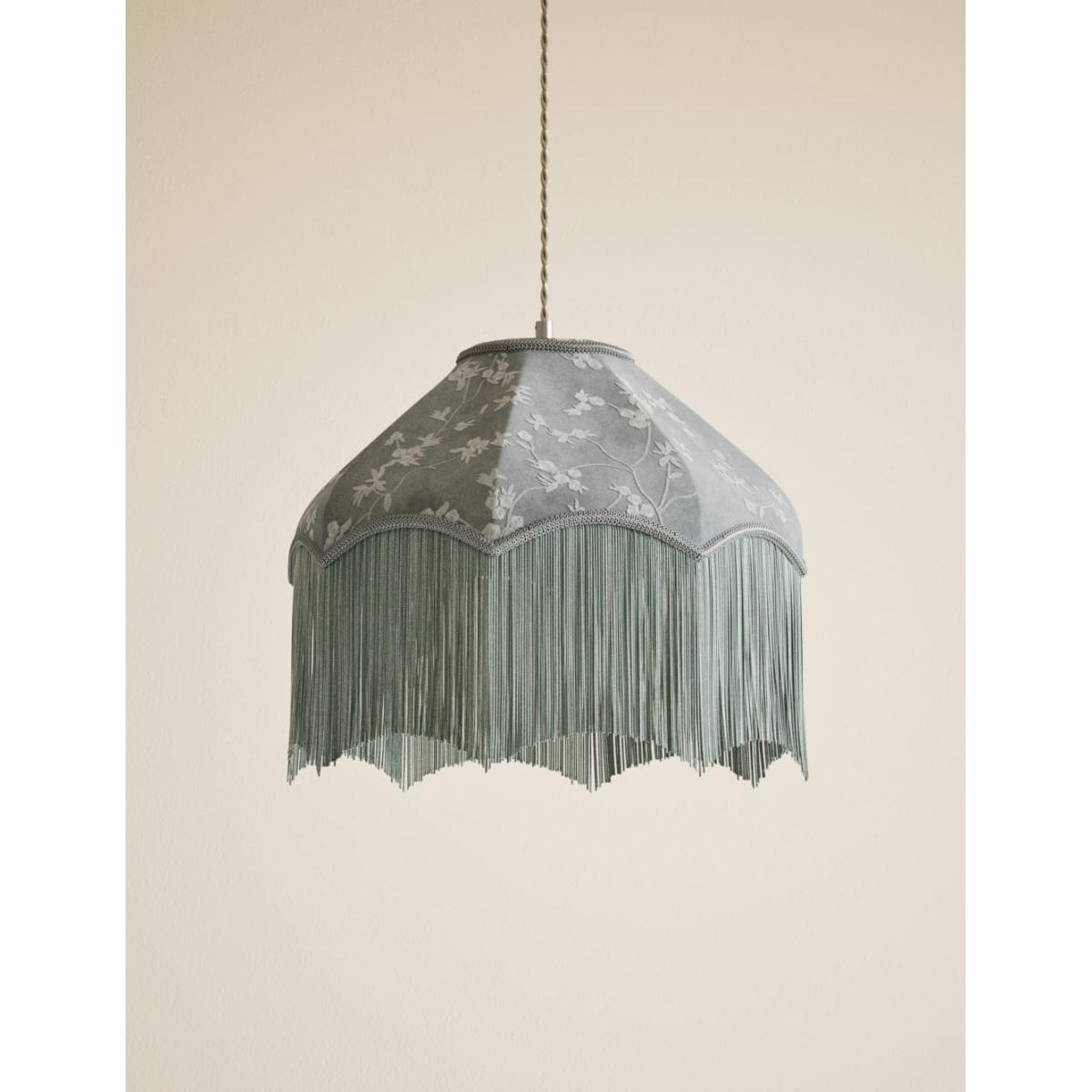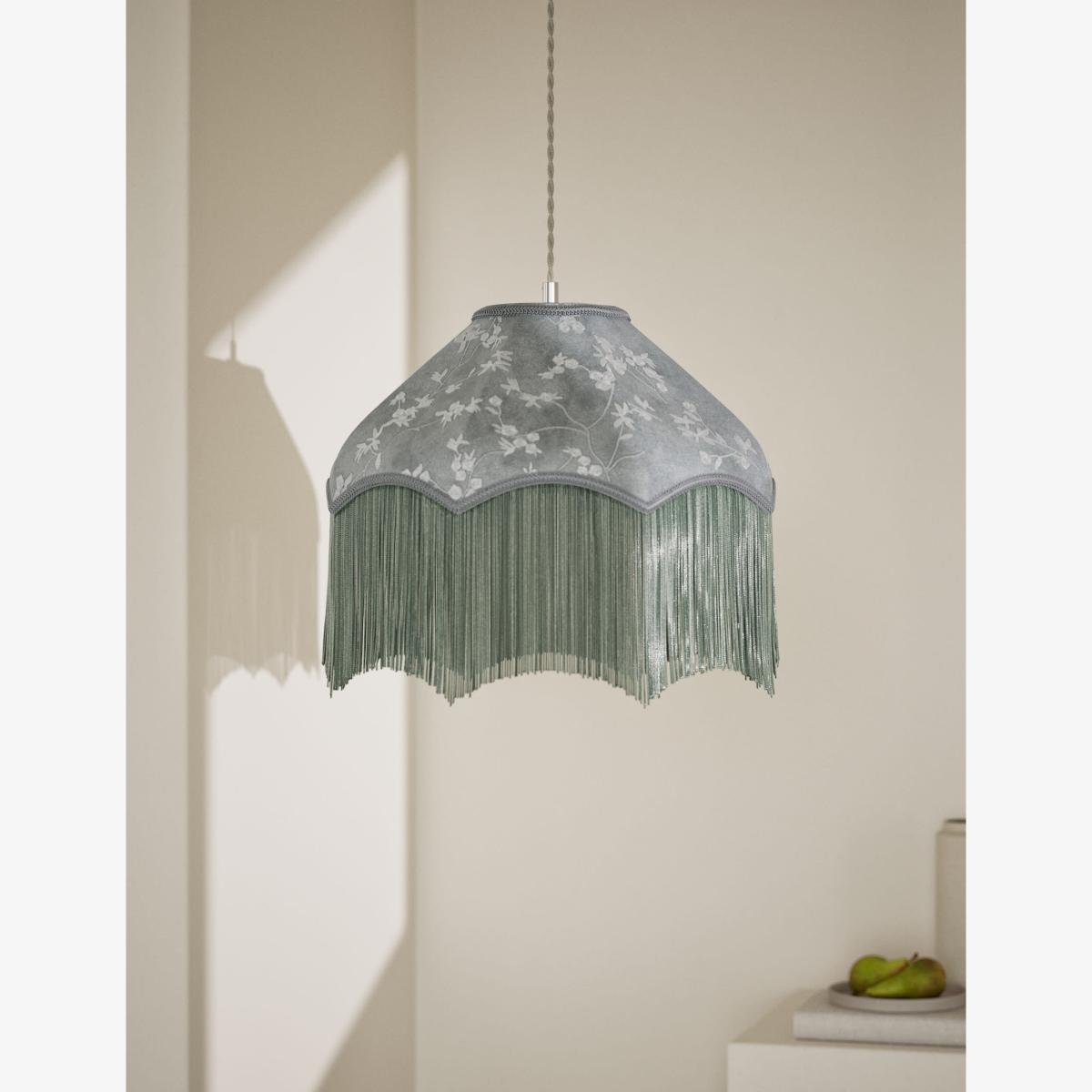M&S Collection Velvet Cherry Blossom Fringed Lamp Shade - Sage, Sage