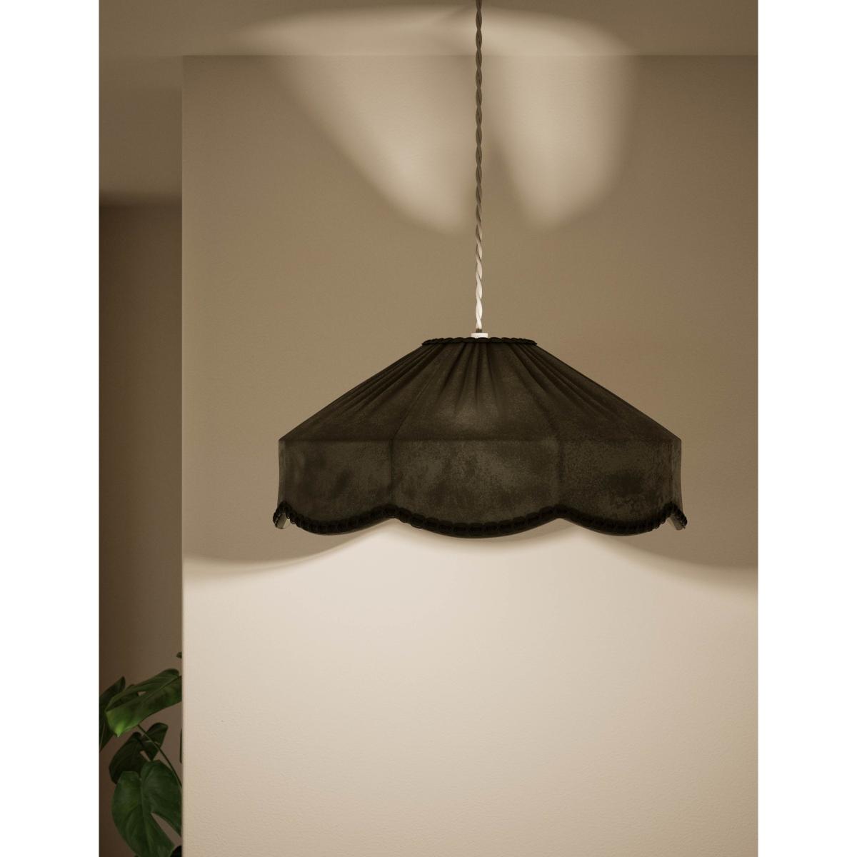Smooth velvet lends a premium feel to this elegant lamp shade. It features subtle pleated detail for a textured touch, and softly curved edging. A decorative trim at the top and bottom provides an opulent finish.