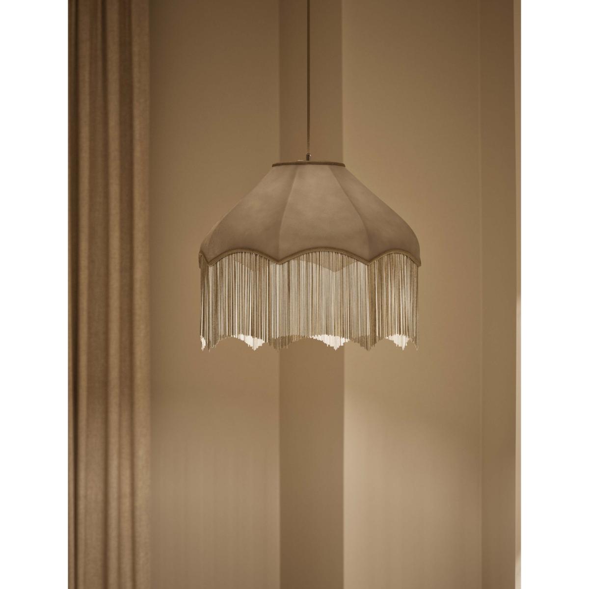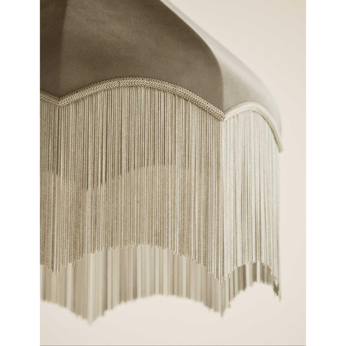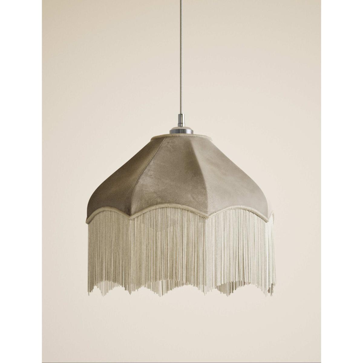 Complete your interior in statement style with this eye-catching oversized light shade. It's made from smooth velvet, with intricately decorated trim at the scallop edges. Opulent fringe detailing provides a distinctively glamorous finish.