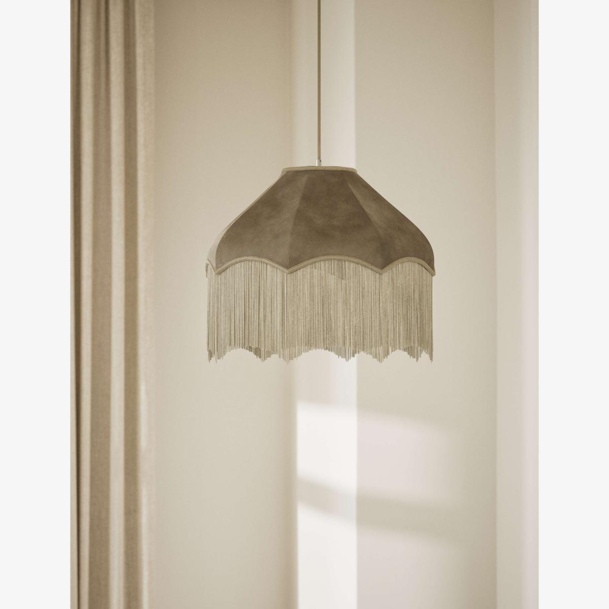 I love this velvet fringed lampshade for its vintage-inspired charm and versatile taupe colour, which make it easy to incorporate into various interiors. It works particularly well in cosy, eclectic, or mid-century styled rooms, adding texture and a touch of elegance without overpowering the space. When styling, consider pairing it with warm metallic accents or soft fabrics to enhance its luxe feel. Practical tips include hanging it in living rooms or bedrooms where you want to create a relaxed ambiance, and balancing its oversized design with more streamlined or minimal furniture to avoid visual clutter. Overall, it’s a great piece for adding character while maintaining a soft, comforting look.