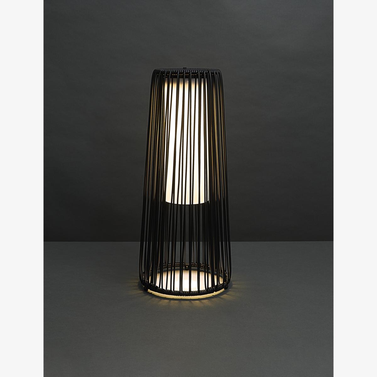 Style your outdoor space with our solar-powered rope lantern. This large, free-standing design is perfect for gardens and balconies alike. It has a discreet solar panel on the top to power its warm white glow.