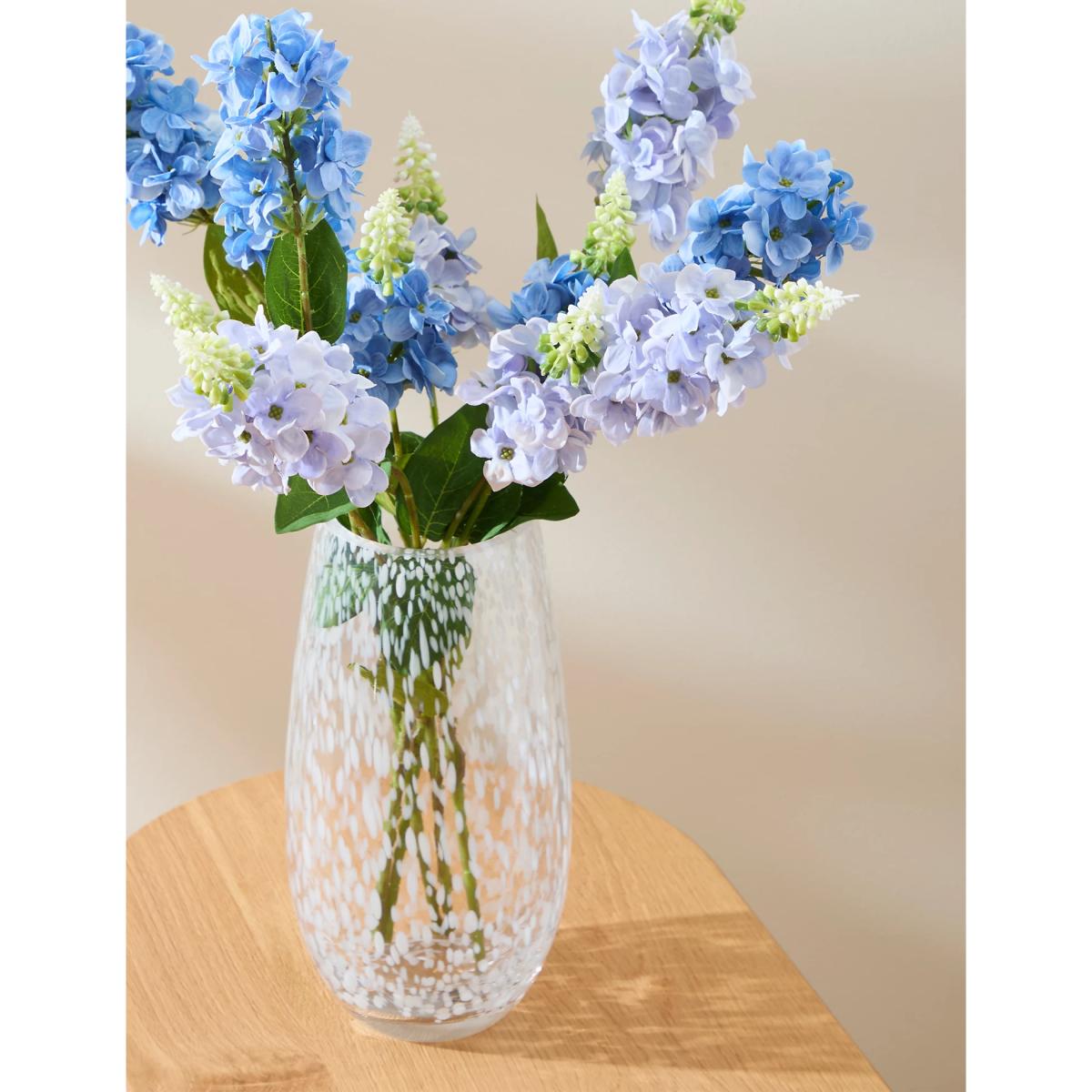 A subtle confetti texture makes this cylindrical vase an elegant home decor piece. The pattern is blown within the glass, allowing it to stand out when objects such as flower bouquets are placed inside.