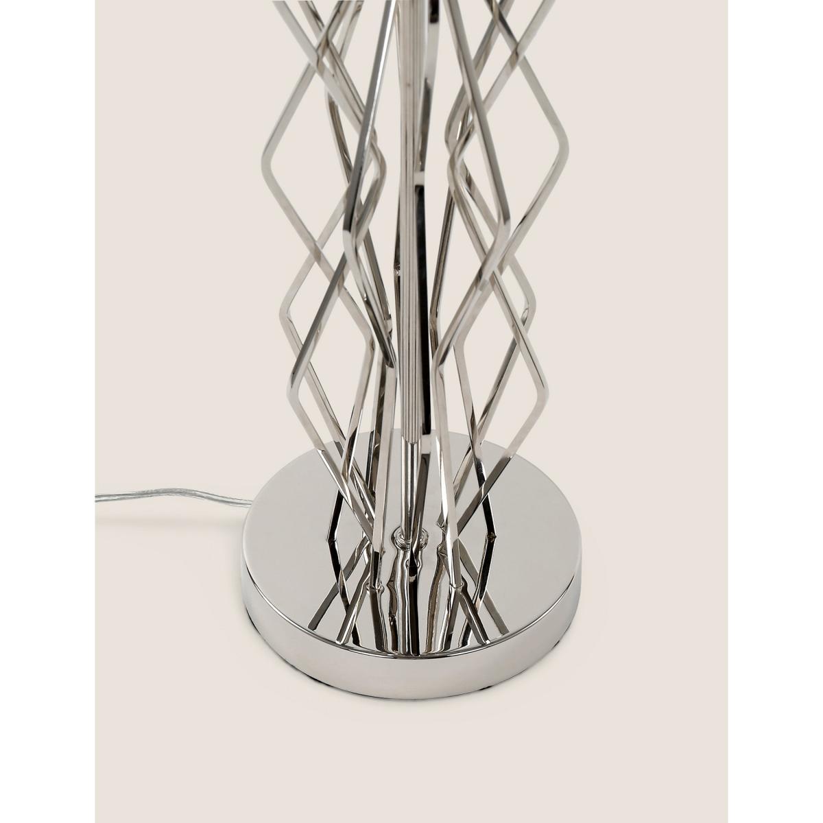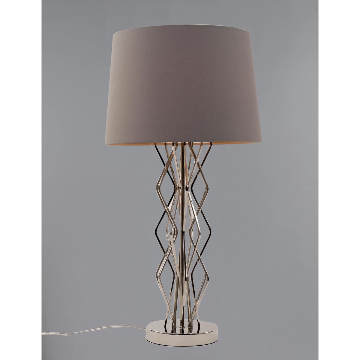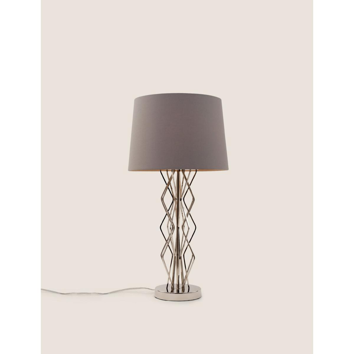 A contemporary table lamp with an intricate framework design and a quality dark grey shade, this statement piece will demand attention with its striking silhouette. This table lamp is a versatile piece that complements a wide variety of interior décors.