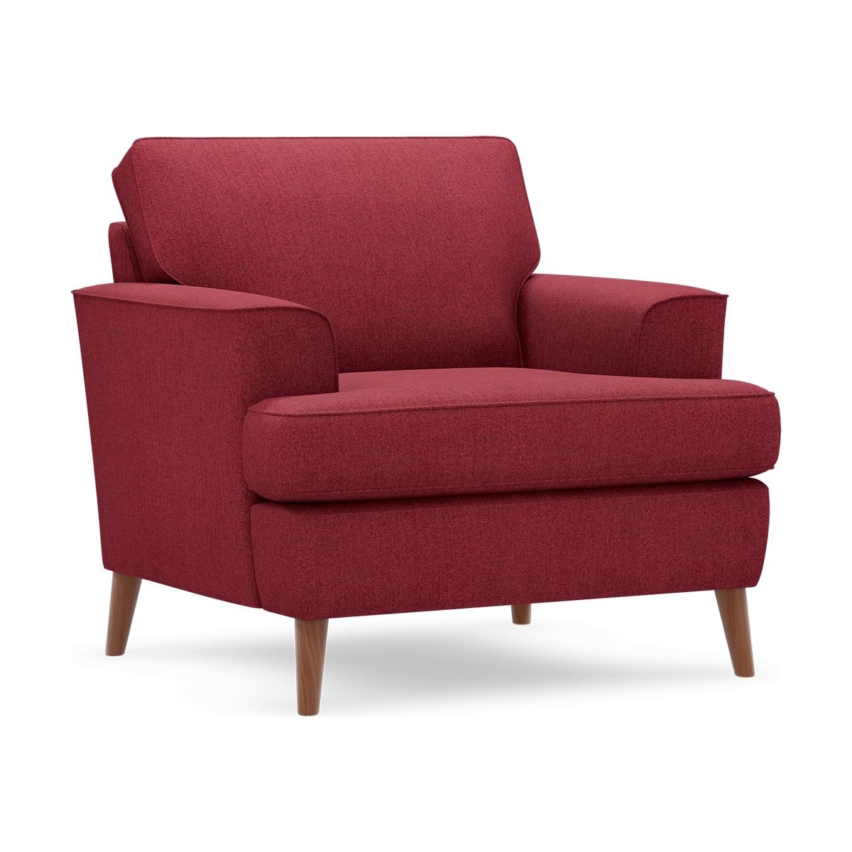 I love this armchair for its versatile colour palette and classic yet contemporary silhouette. The rich red upholstery makes it a statement piece that works beautifully in both modern and traditional interiors, especially when paired with neutral tones like greys and beiges to tone down the vibrancy. It also lends itself well to layered textures-think soft throws or decorative cushions in complementary colours such as blush, navy, or mushroom to create a cosy, inviting corner. Practical styling tips include pairing it with a neutral rug and brass or wooden accessories to enhance its natural elegance. Its supportive yet relaxed design makes it perfect for cosy reading nooks or lived-in lounge areas, and the range of shades like duck egg, dark teal, or navy allows flexibility to complement existing colour schemes.