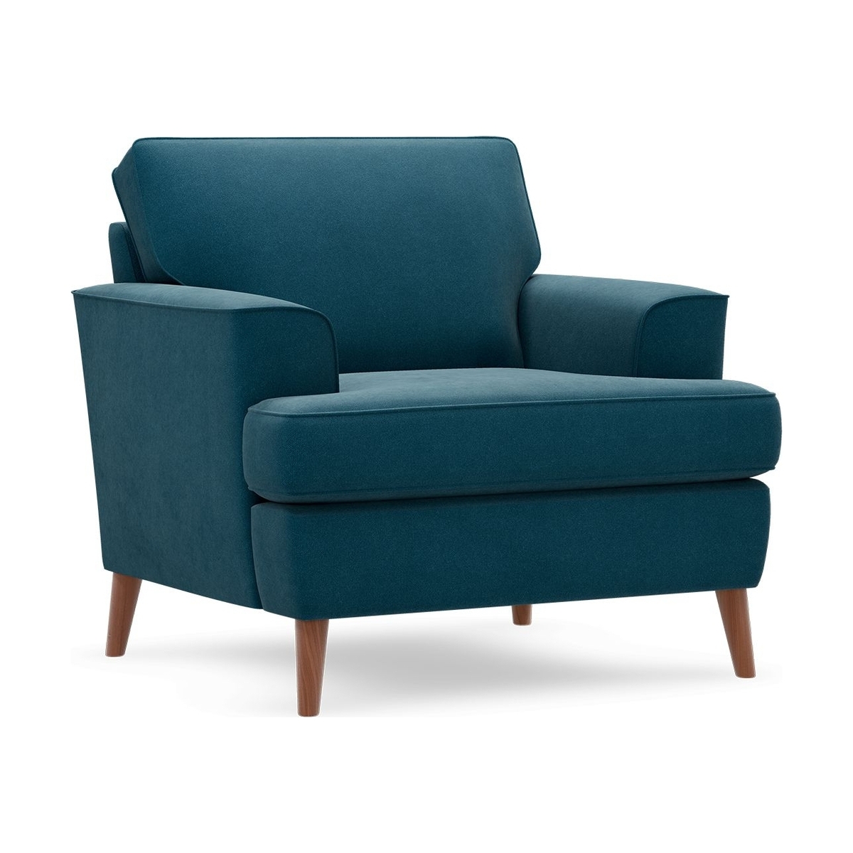 Channelling the highly-coveted Scandinavian design aesthetic, our Copenhagen armchair is a great new addition to any lounge room, hallway or bedroom. The generous seating space, combined with low arms and tapered wooden legs create a truly stunning, timeless design. The T-cushions open up the seating area, making it perfect for lounging on while reading a book. Choose from a wide range of colour and fabric finishes to find the perfect look to suit your personality and space. Some of our upholstery fabrics are treated with Aquaclean technology, so stains can be removed using only water. Available on Aquaclean Weave and Aquaclean Velvet.