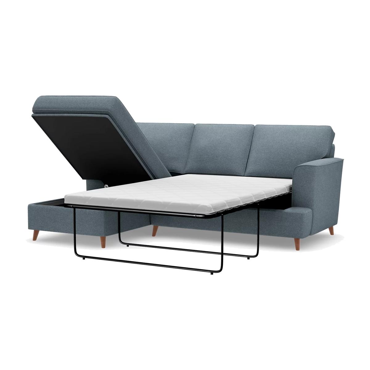 This Copenhagen corner chaise is the ultimate mix between style and comfort. Not only does it carry a spacious storage area, it doubles as a sofa bed for that extra added comfort during lazy Sunday afternoons, or for when friends come to stay. This left handed corner sofa is a gorgeous addition to your home, with a generously spacious seating area accompanied by a lovely Scandinavian appeal. Modern and minimal, it's hard to believe how stunning simplicity can really be. All our made to order fabrics come with stain defence. Foam mattress with a soft quilted cover for ultimate comfort With removable feet